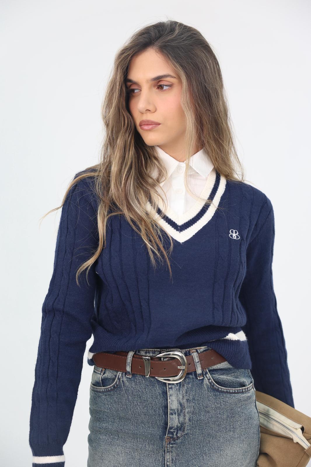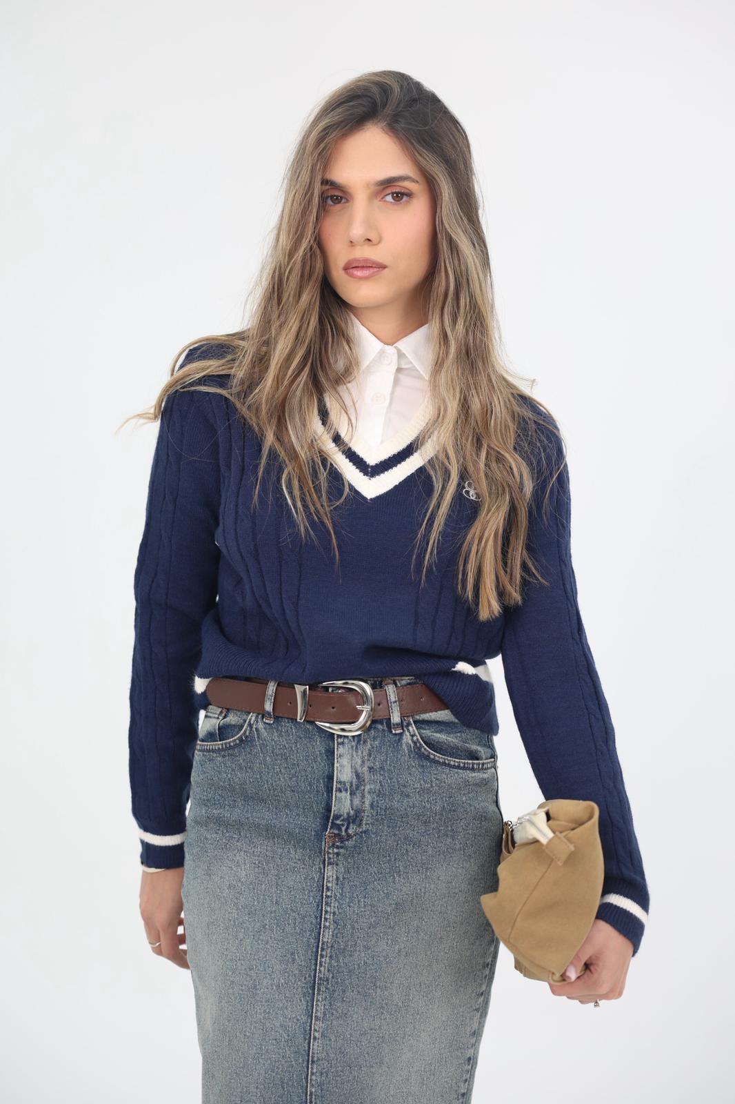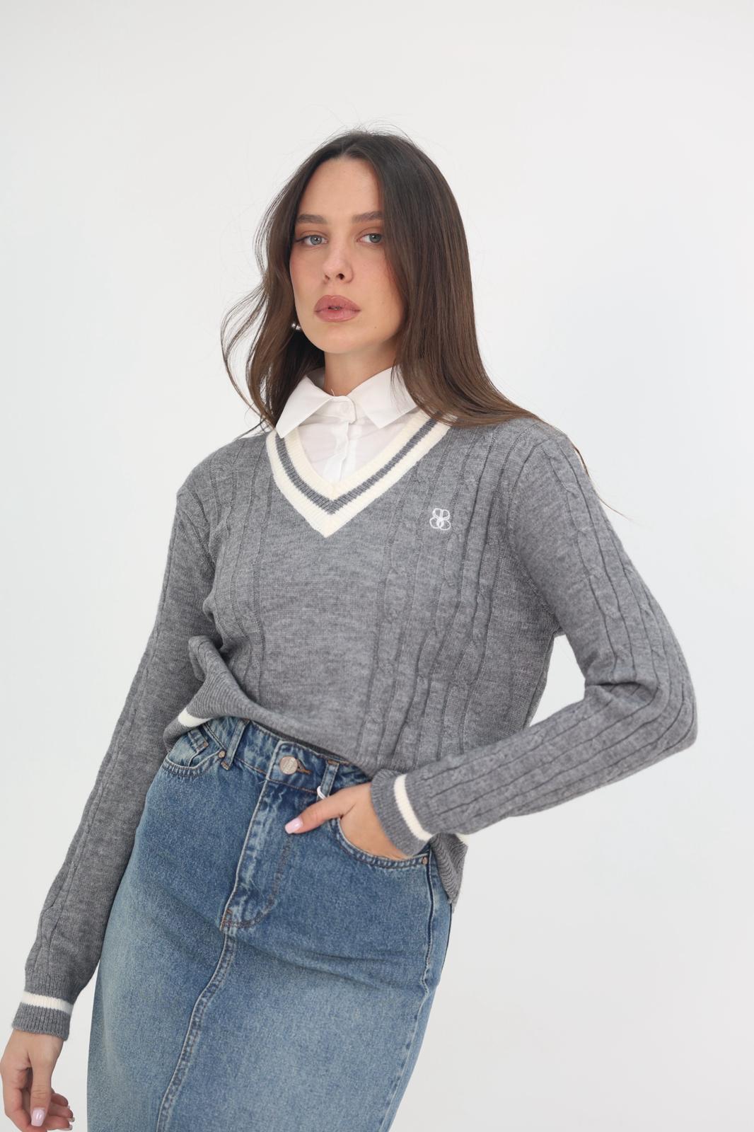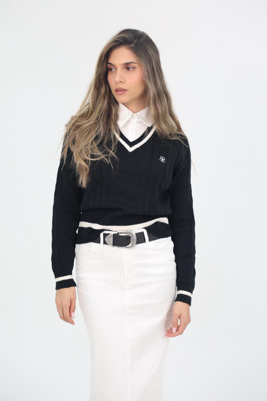 חולצת פולו סריג שילוב מכופתרת.