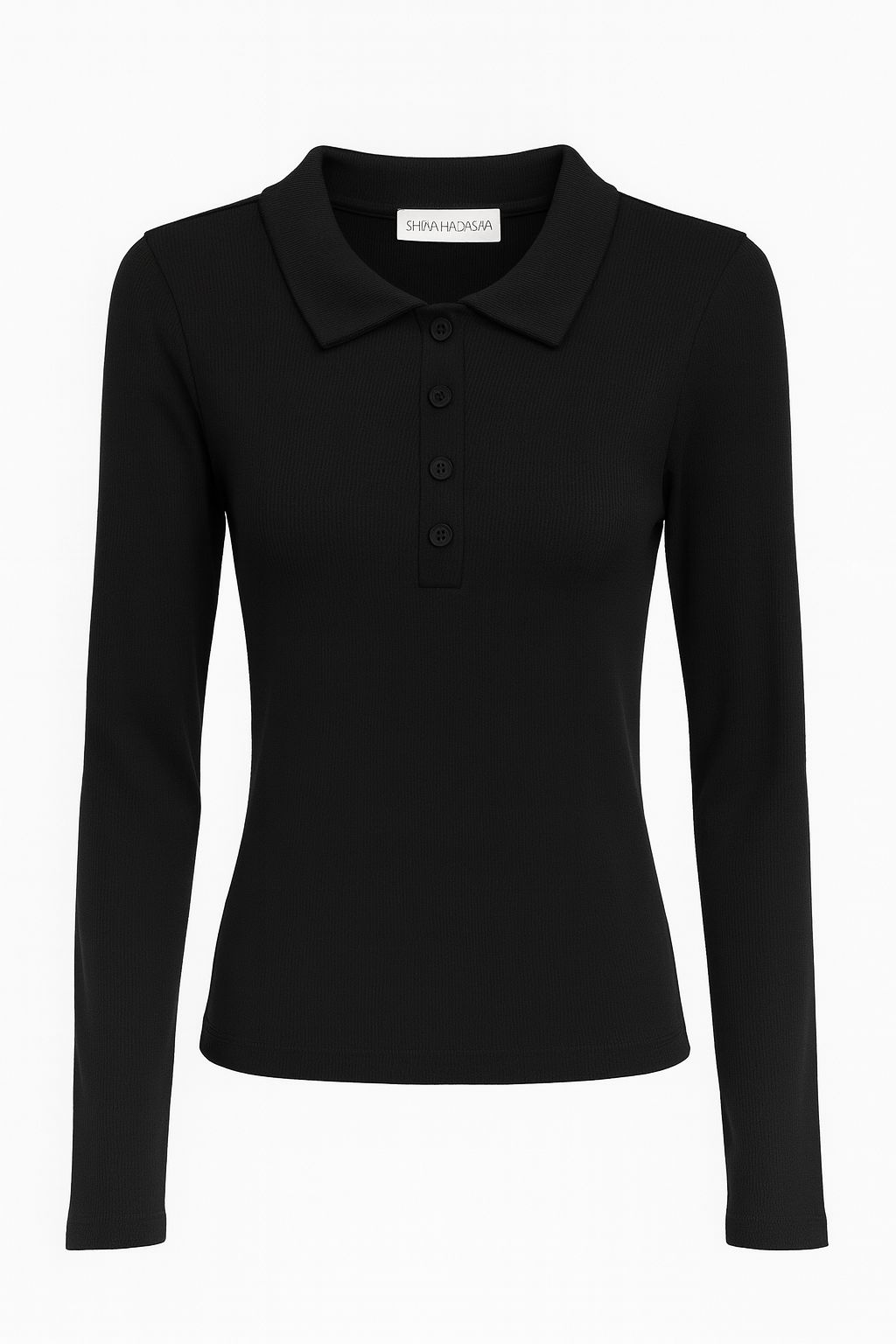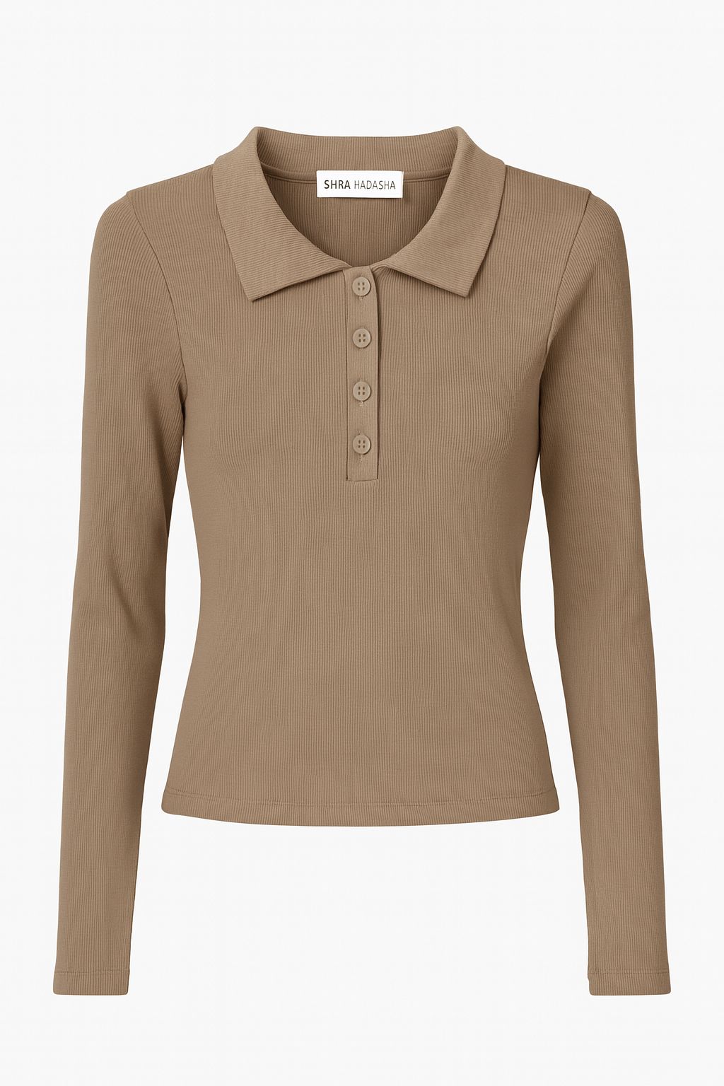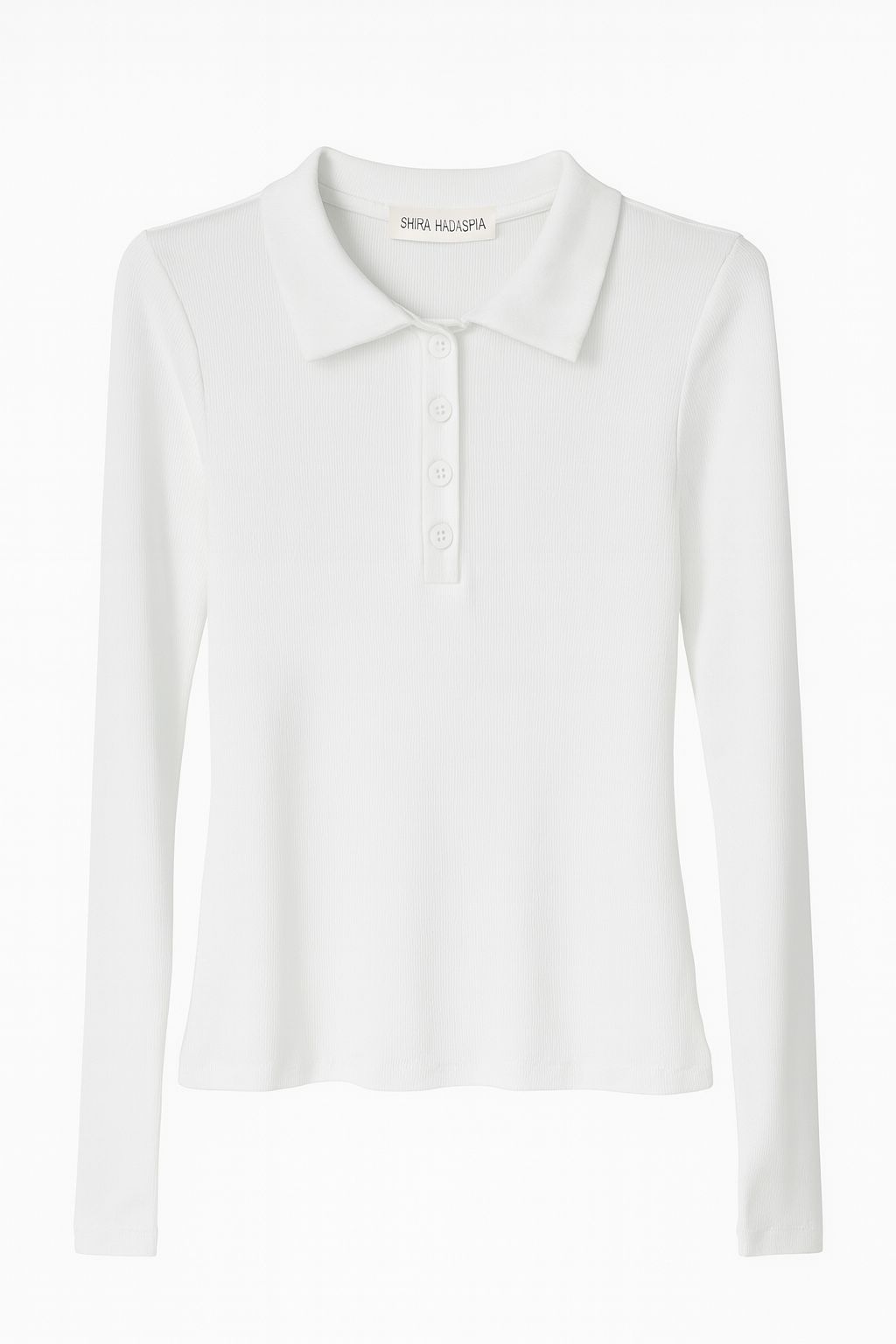 חולצת בייסיק בד ריב, צווארון פולו כפתורים, שרוול כפפה בסיומת