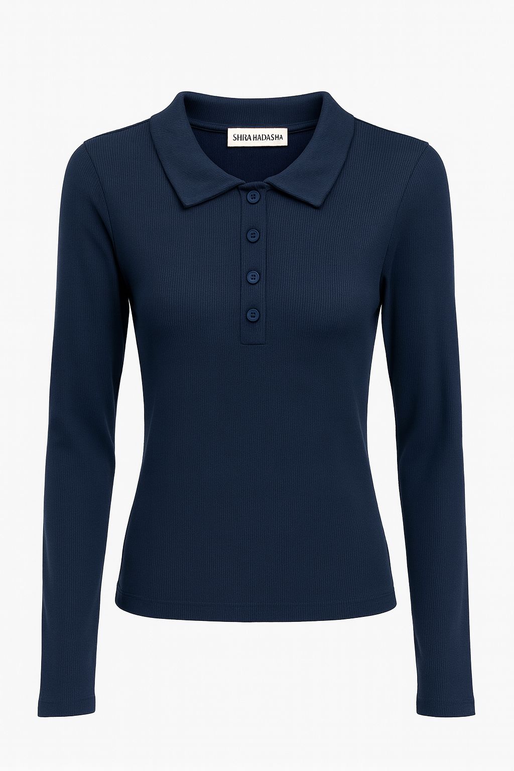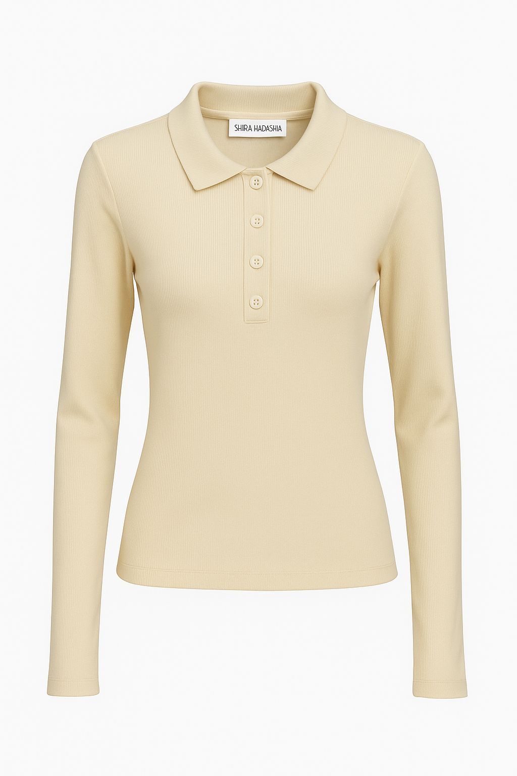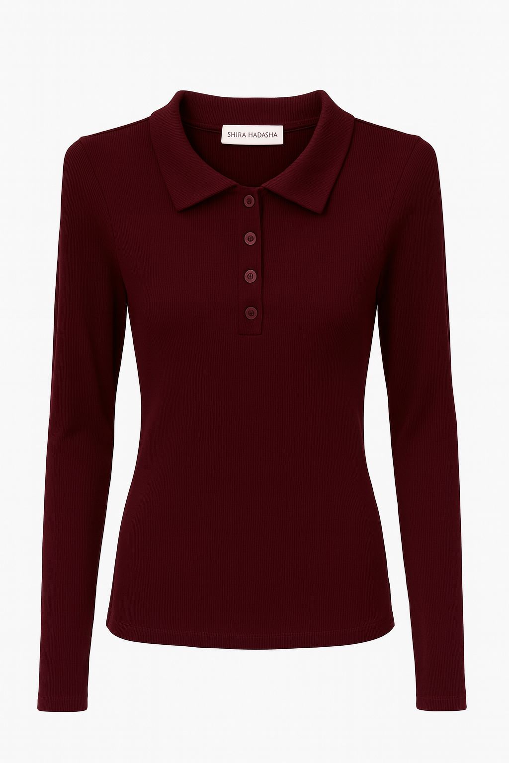חולצת בייסיק בד ריב, צווארון פולו כפתורים, שרוול כפפה בסיומת