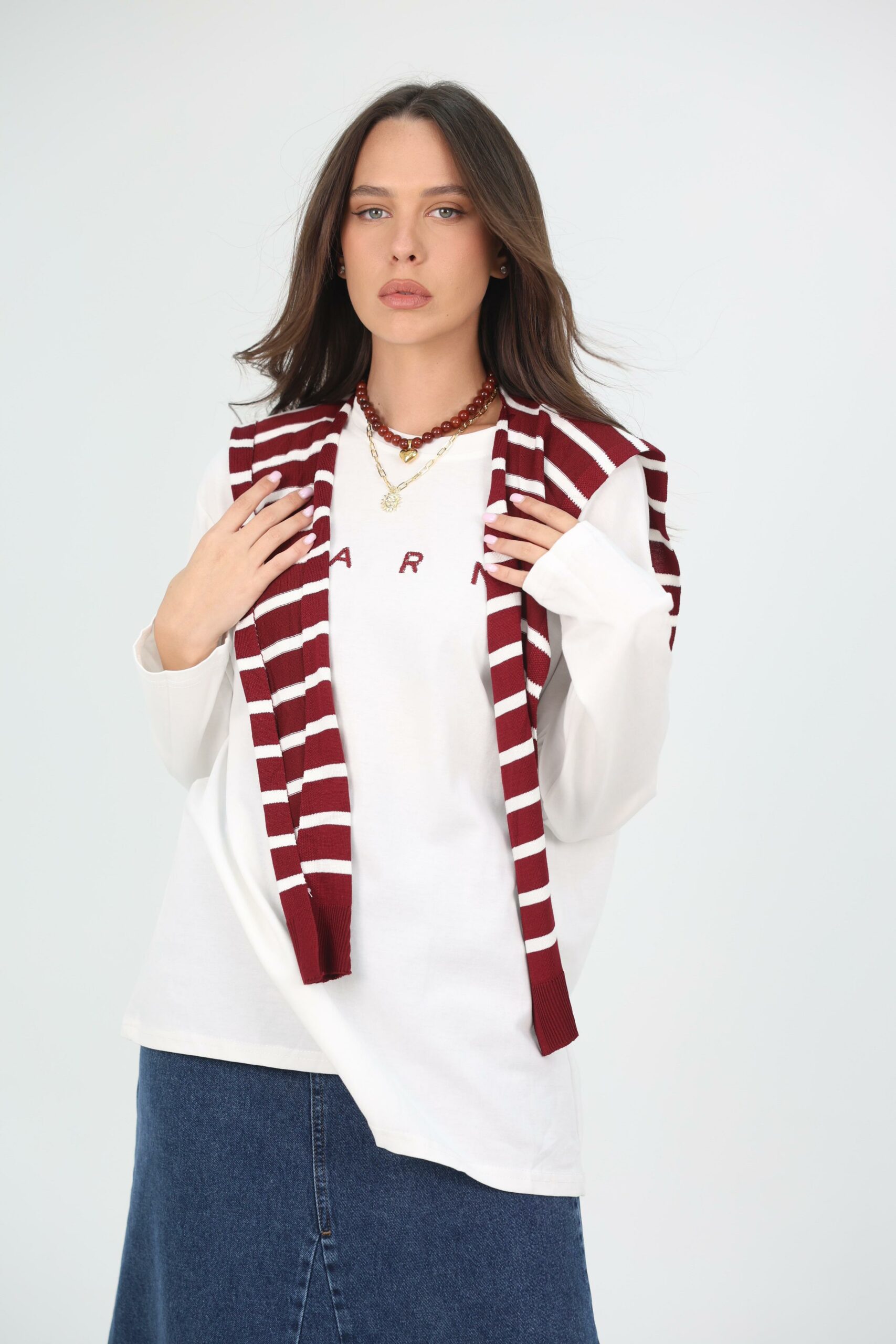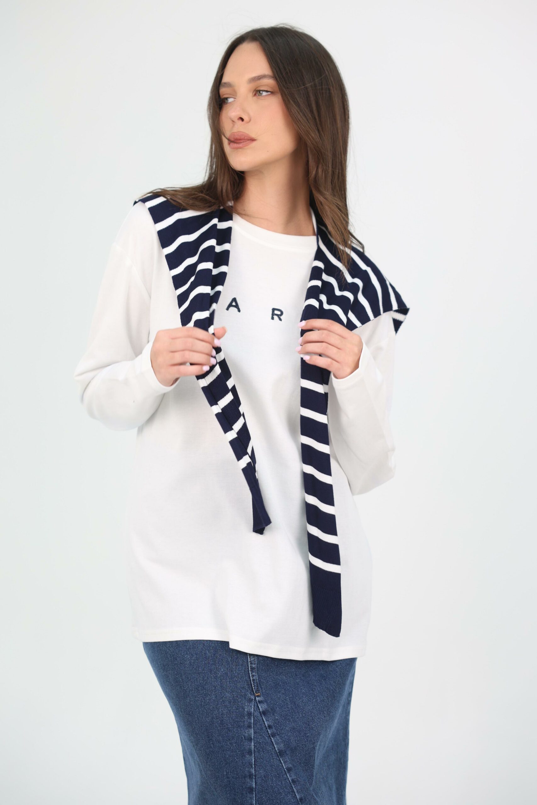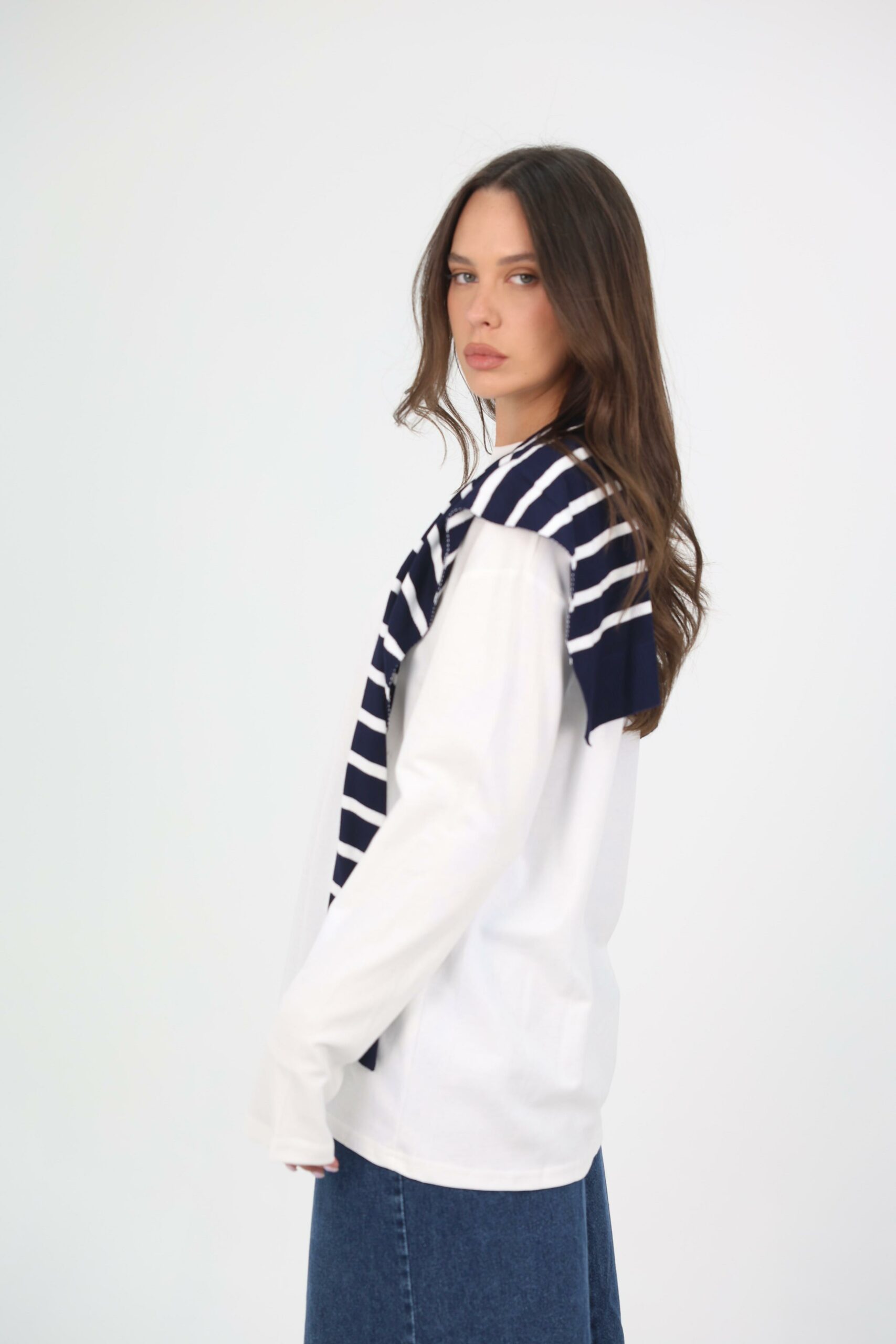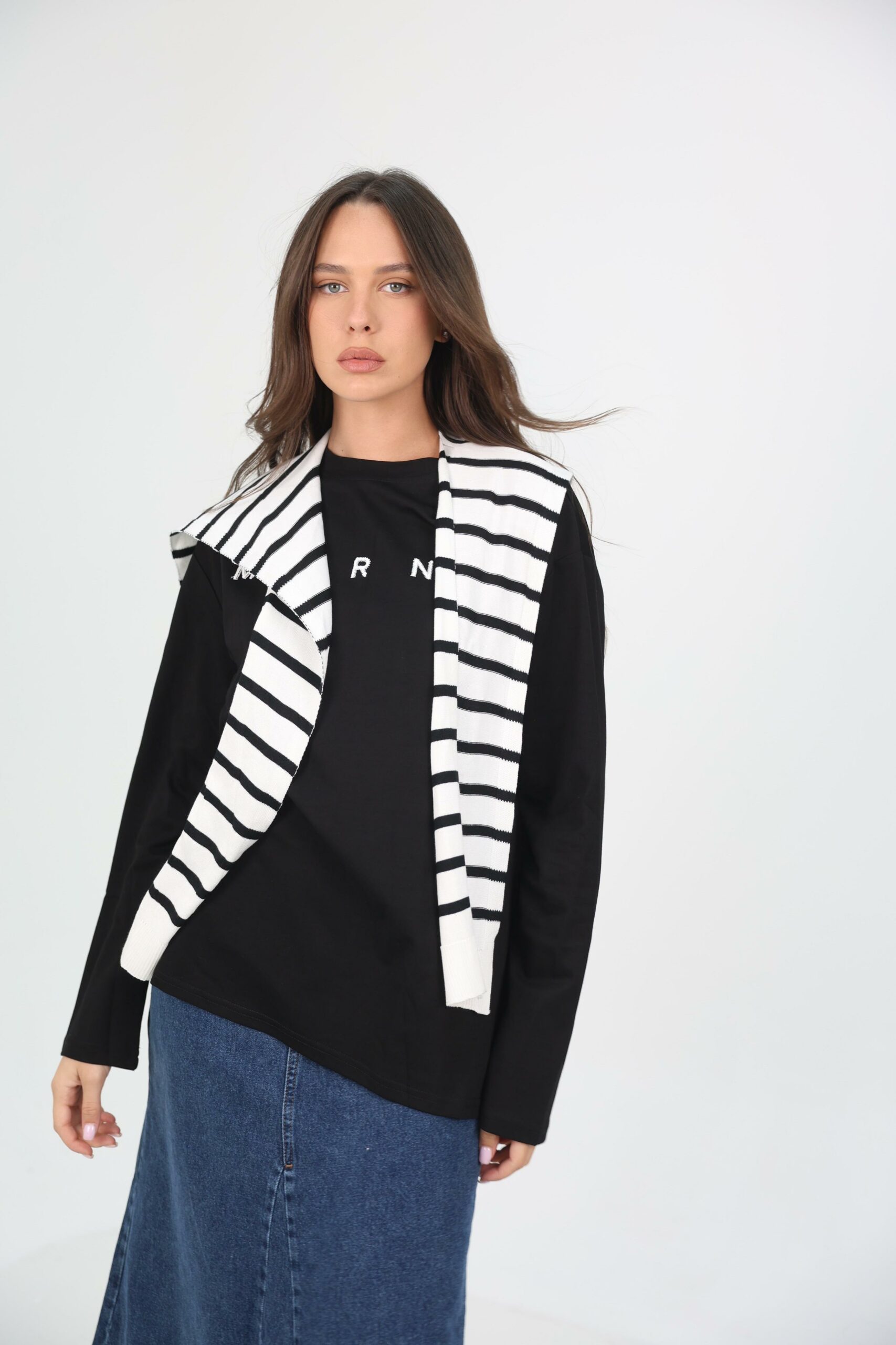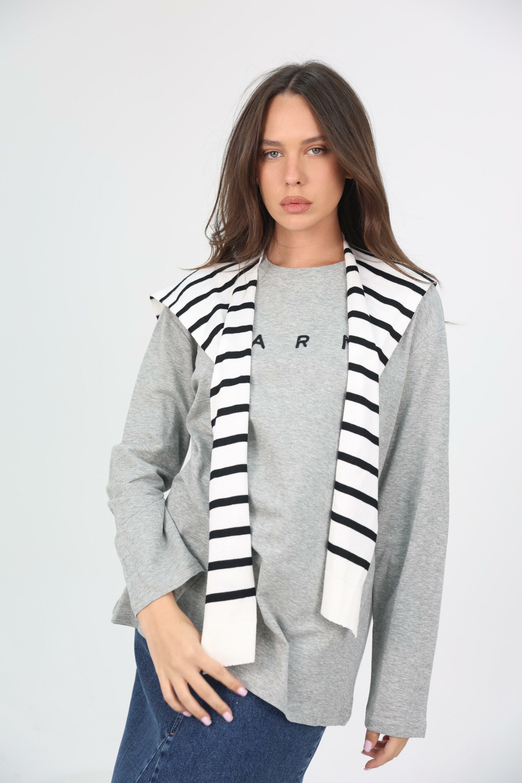 חולצת אוברסייז דפוס כולל קשירת סריג מושלמת.