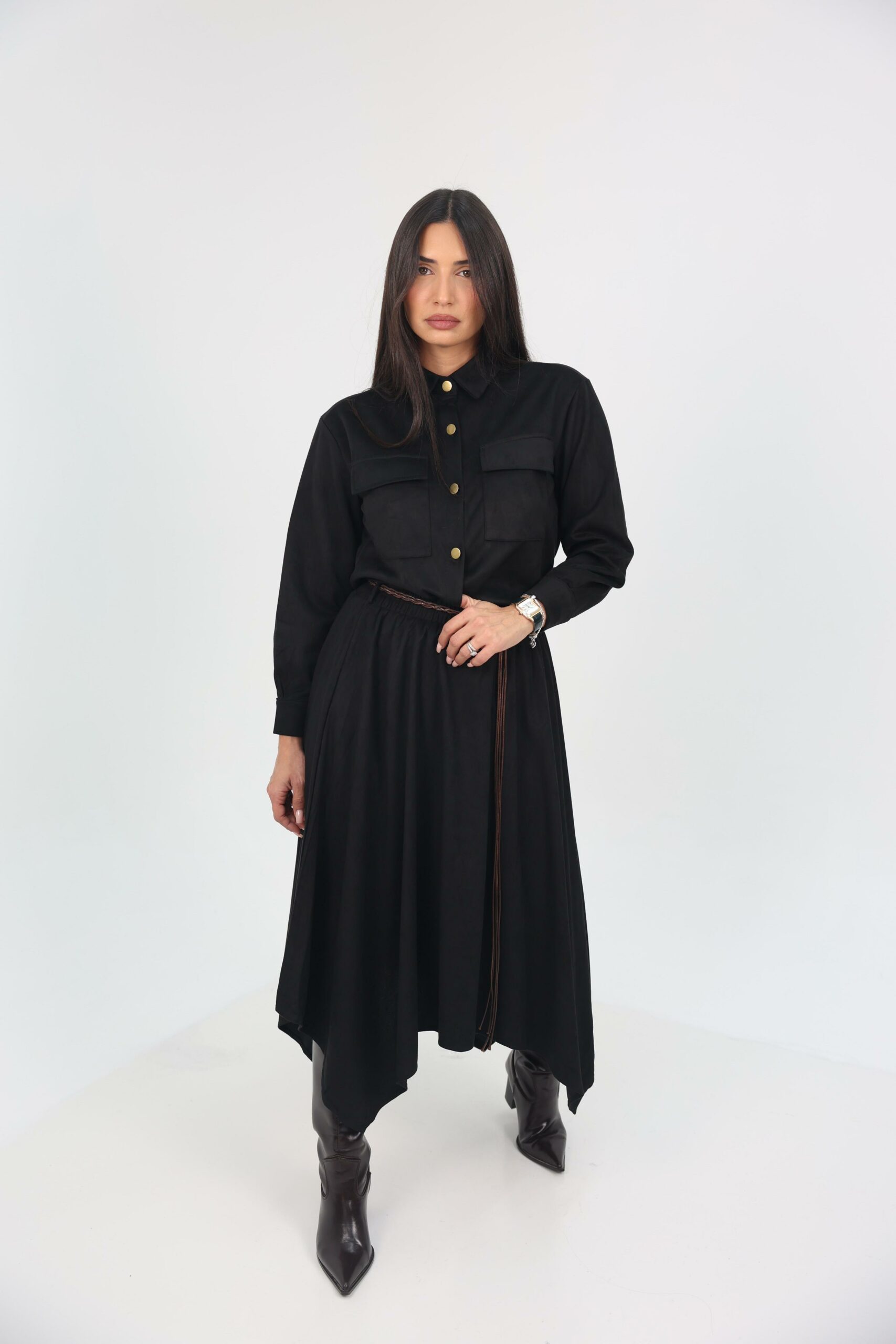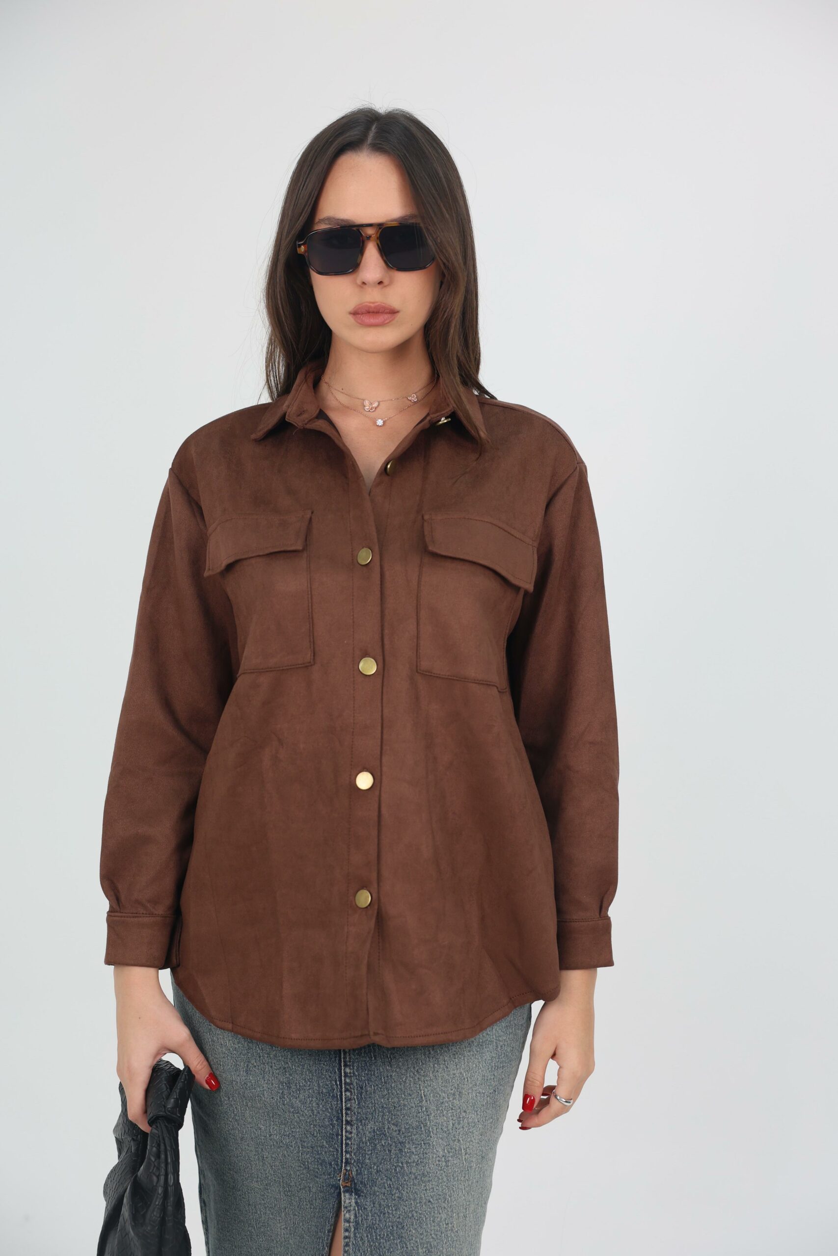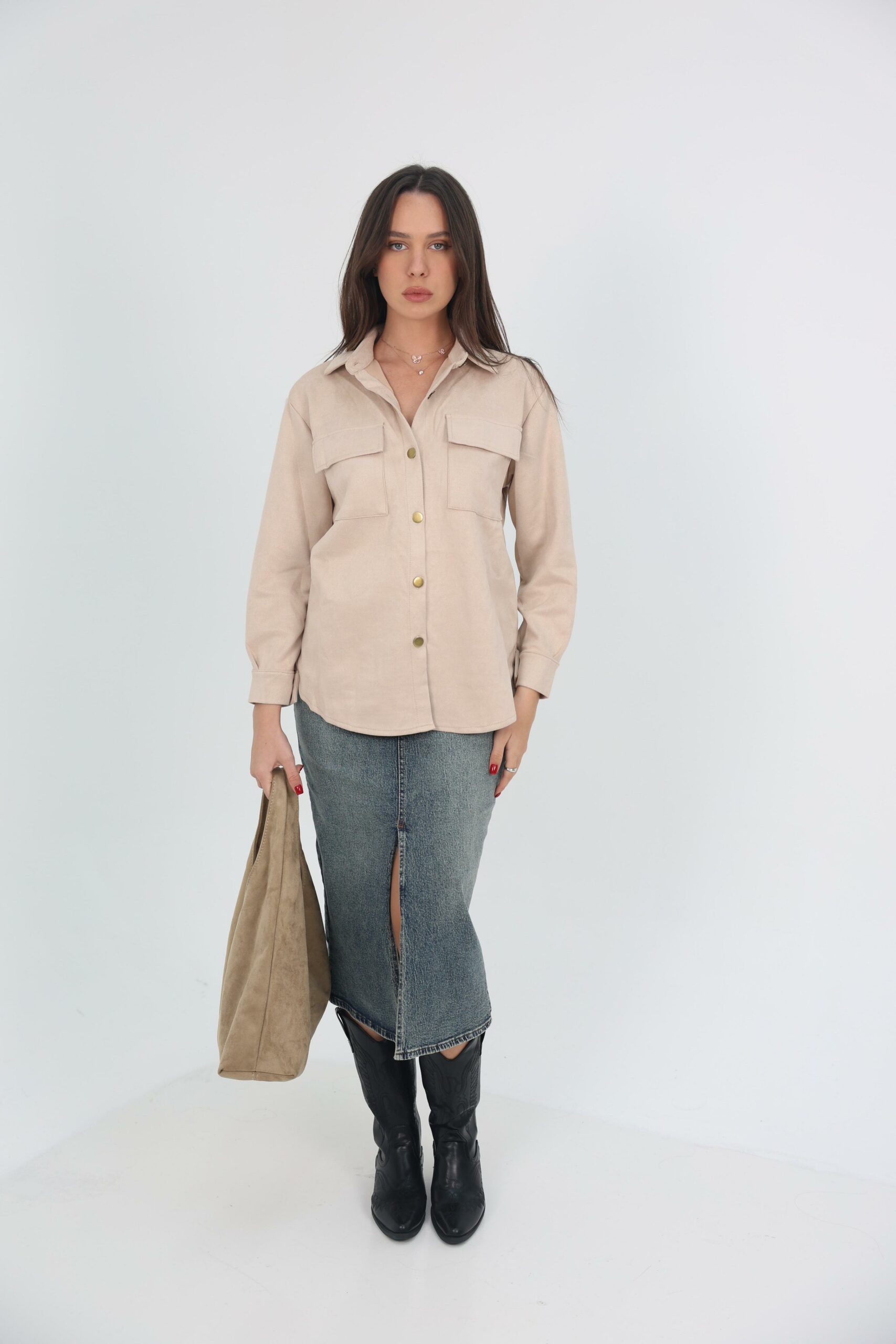 חולצת זמש רכה ונעימה בגזרה מחויטת-אוברסייז.