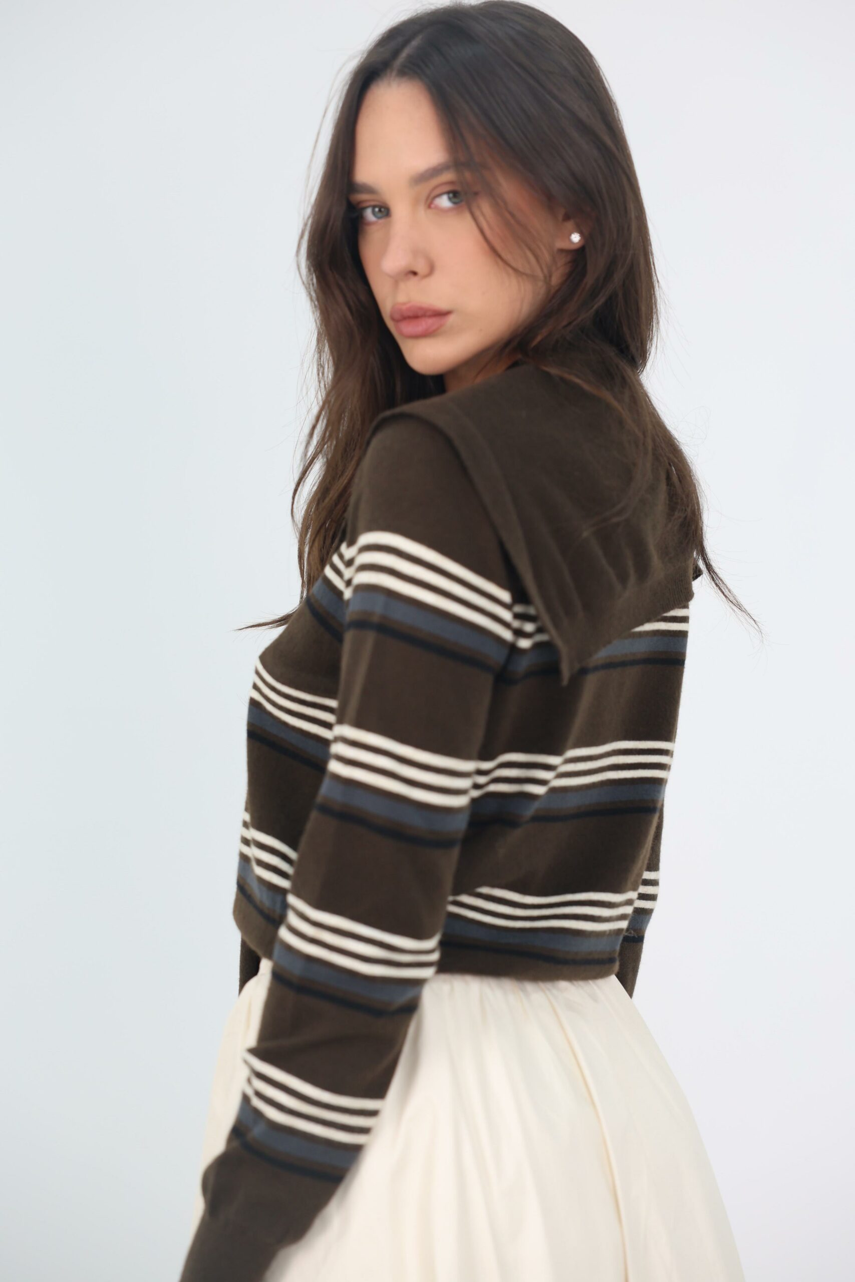 סריג פסים אלגנטי בגזרה נקייה ומחמיאה, עשוי בד רך ונעים למגע.