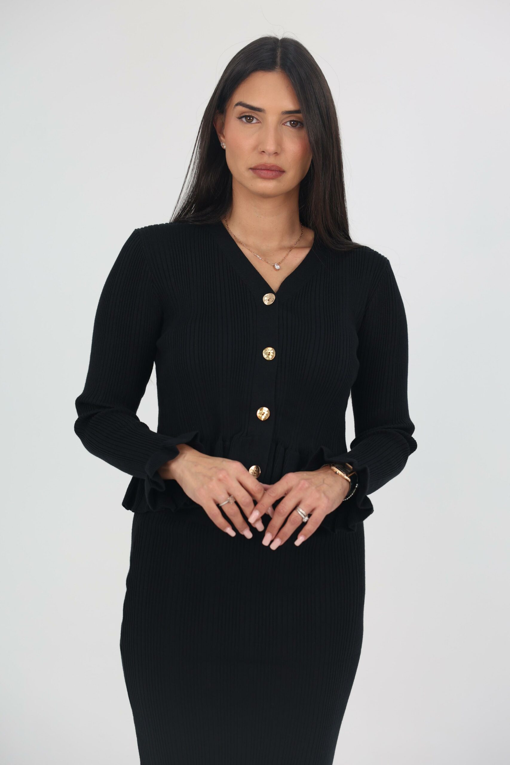 חליפת סריג אלגנטית בשני חלקים מבד ריב איכותי ונעים.