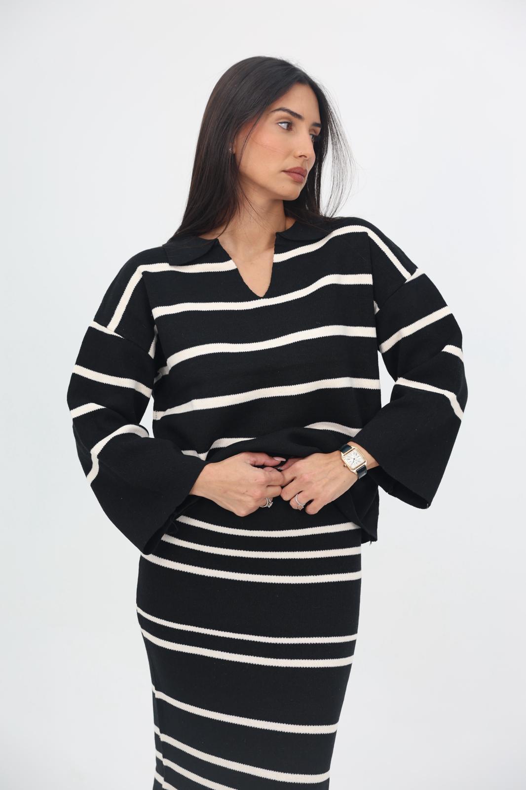 דוגמת הפסים מוסיפה סטייל מדויק ולוק על־זמני שמשתלב מושלם ביומיום ובערב.