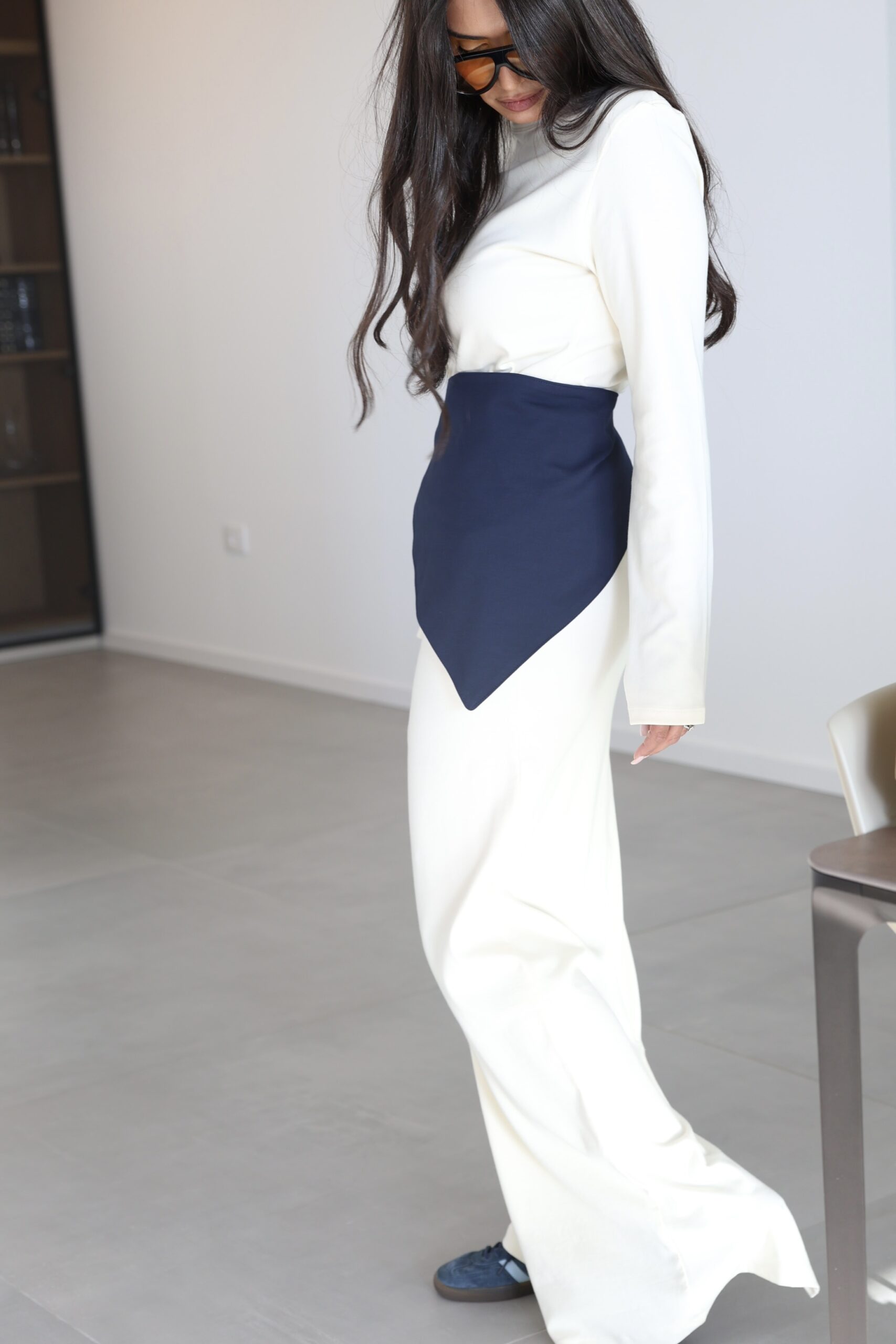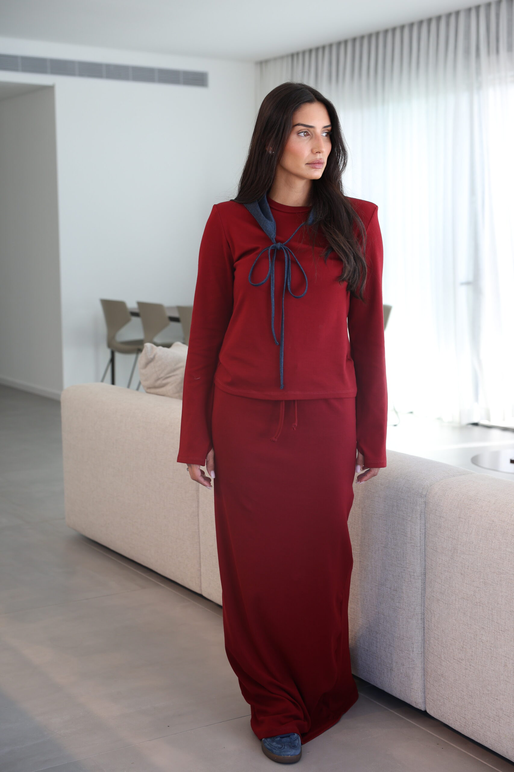 חצאית מקסי נשפכת שרוך קשירה מפתח אחורי.