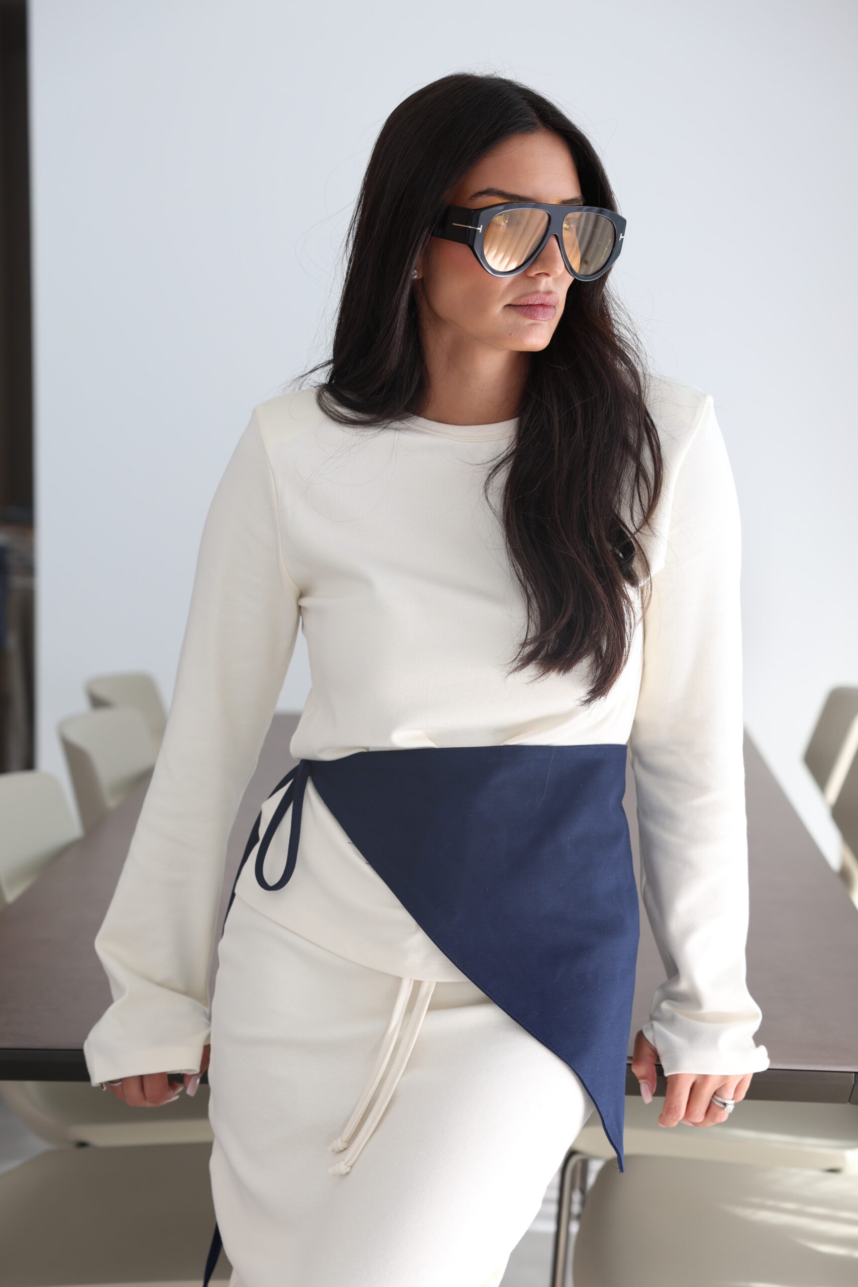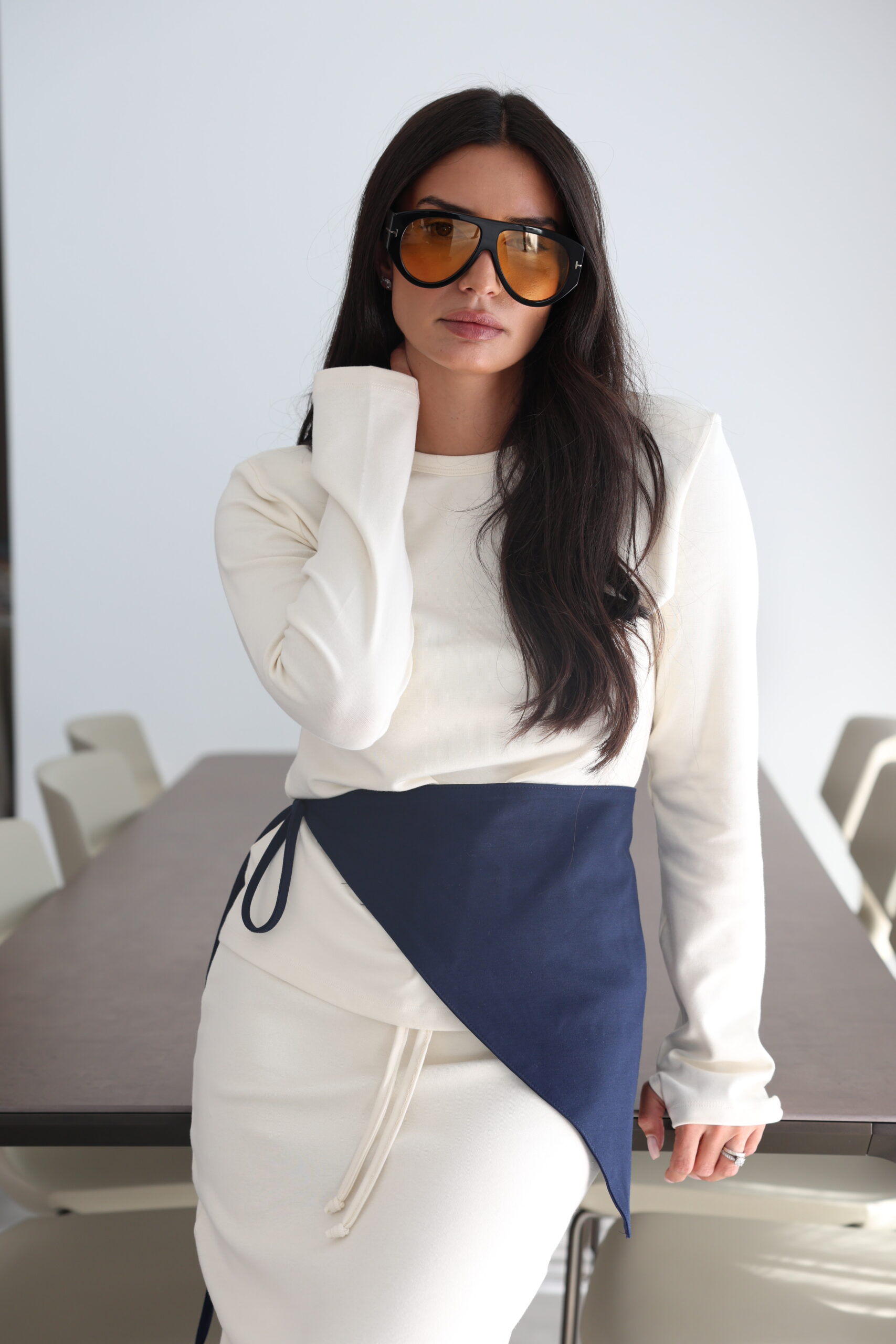 סט חולצת כריות שרוול ארוך כפפה צווארון ניקי עגול