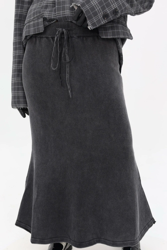 חצאית באורך מידי עם גזרה מחמיאה ונשפכת, עשויה בד סריג רך ונעים למגע.