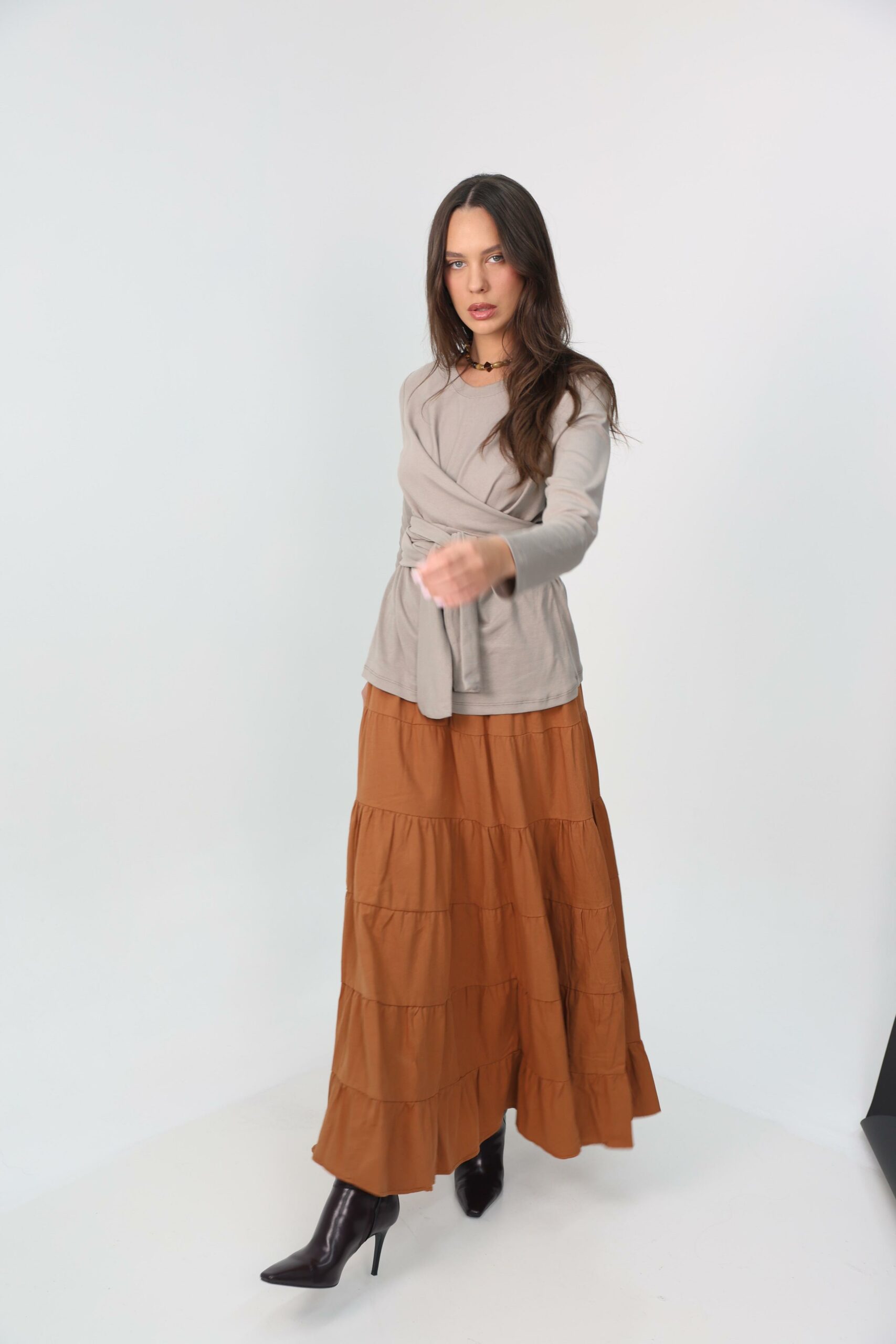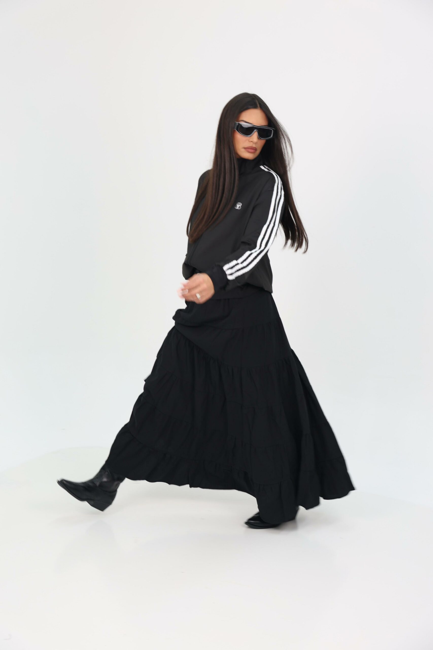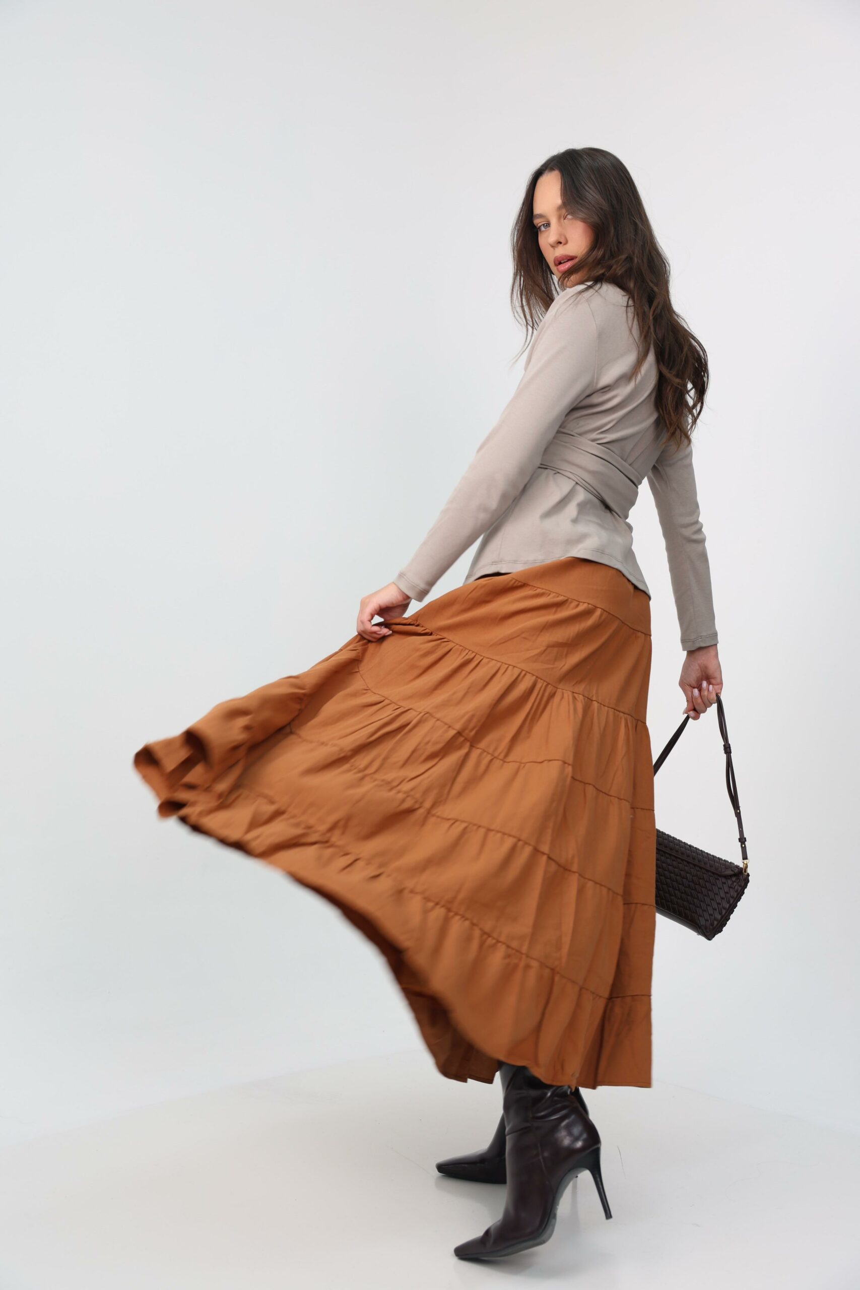 חצאית קומות אוברסייז רחבה גזרה מושלמת מתאימה ללוק יום יומי או לערב.