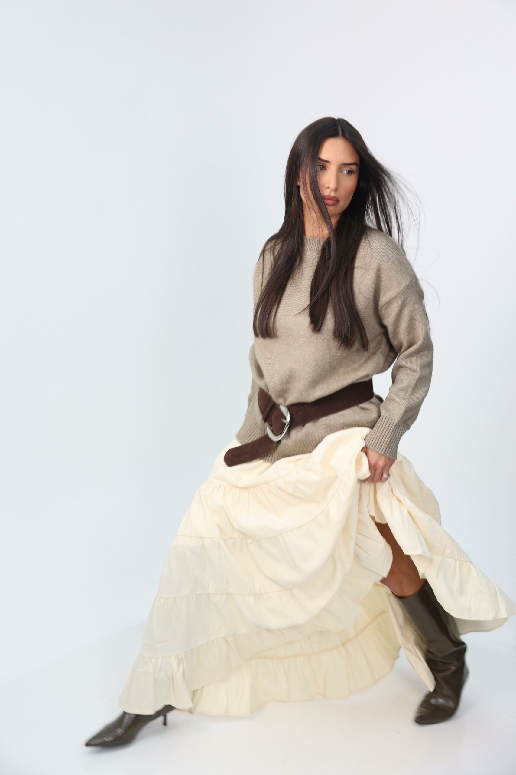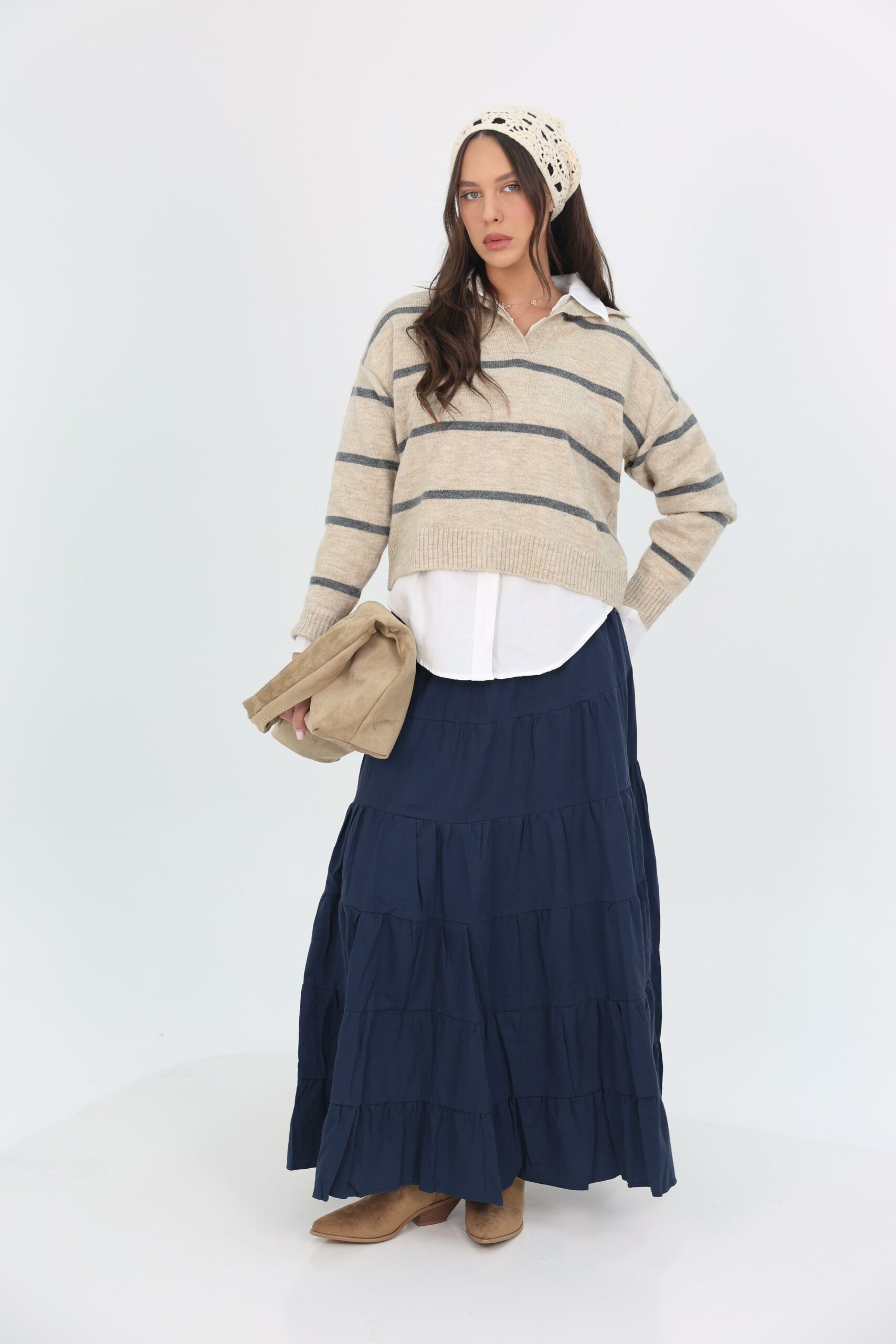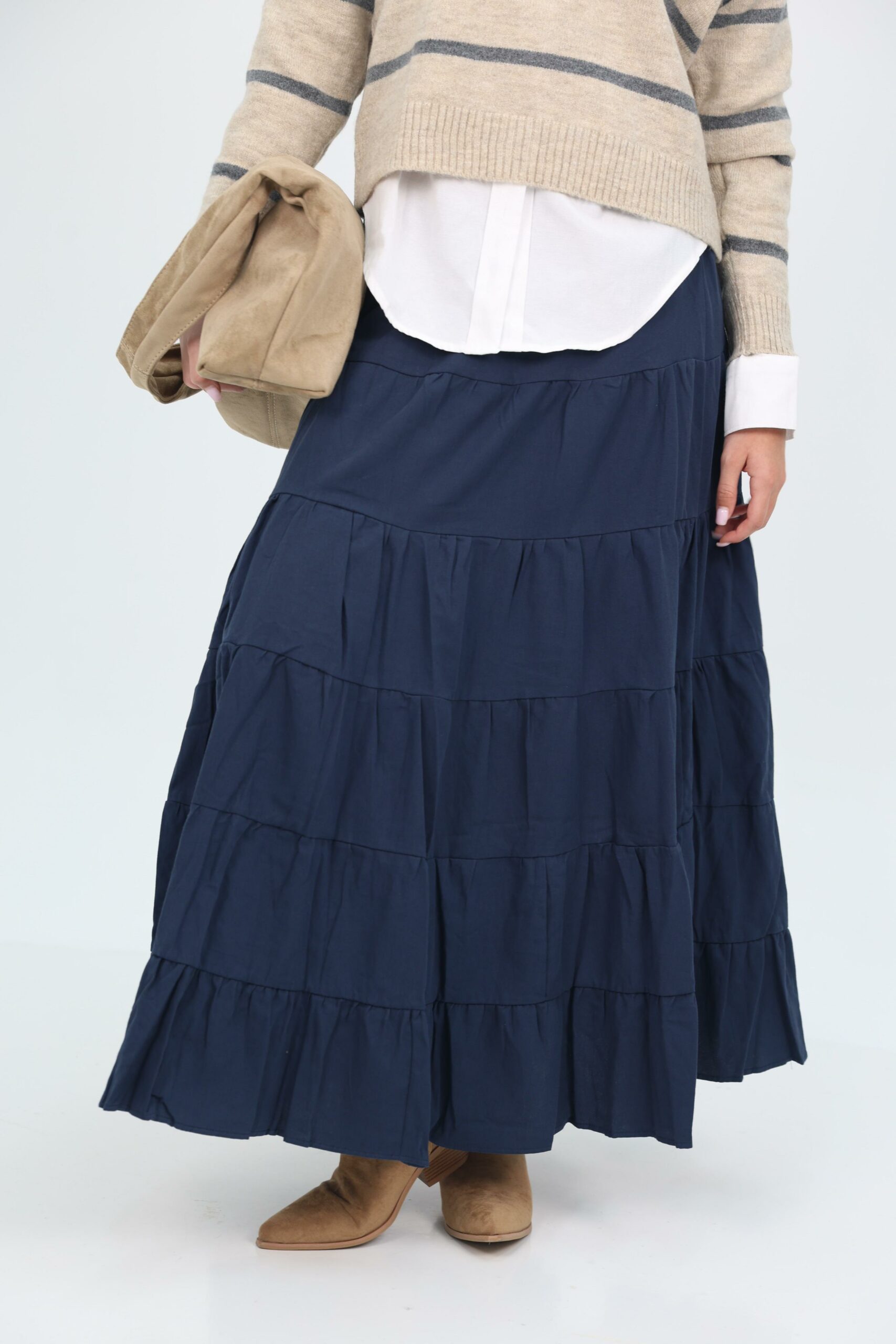 חצאית קומות אוברסייז רחבה גזרה מושלמת מתאימה ללוק יום יומי או לערב.