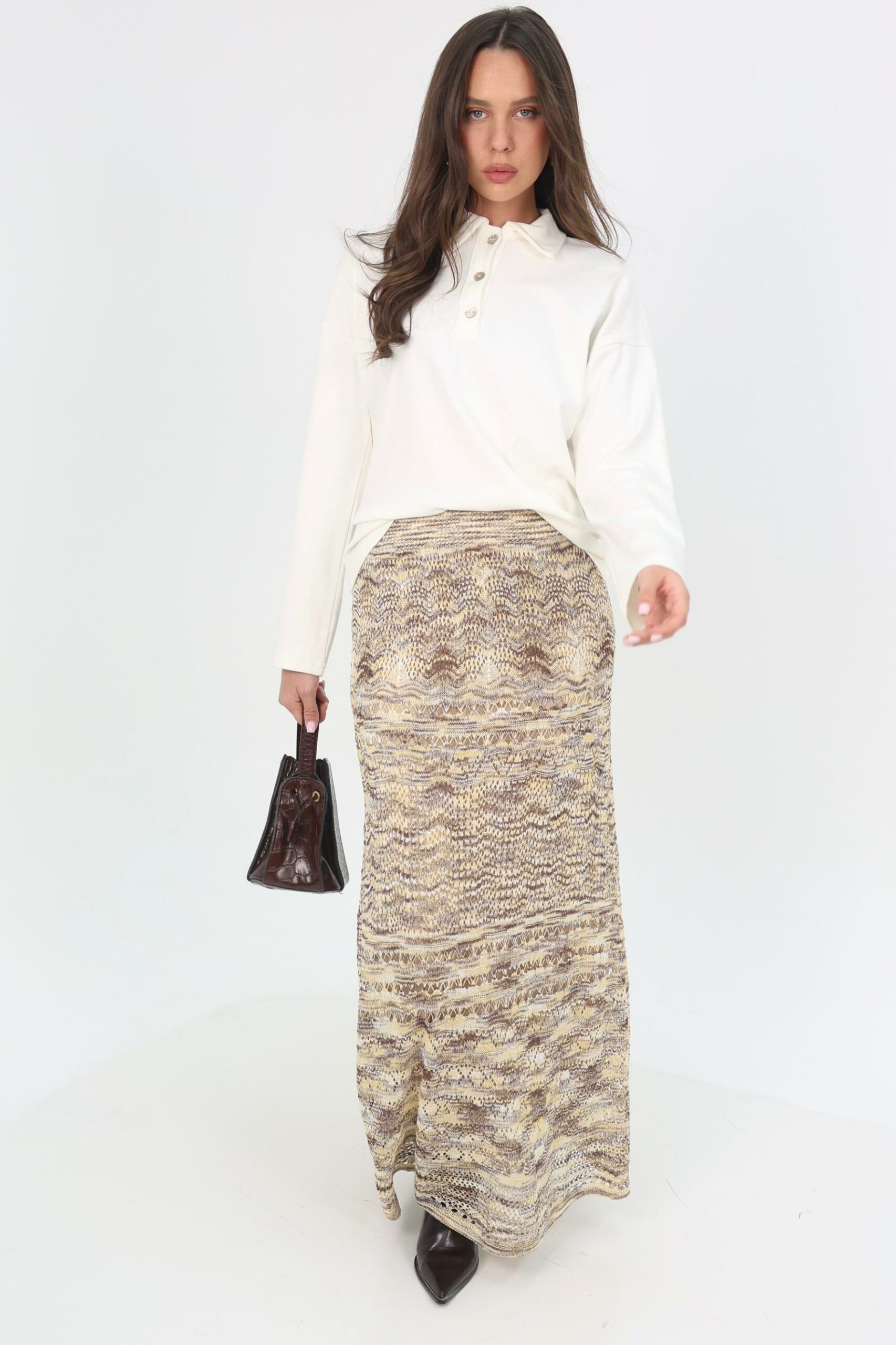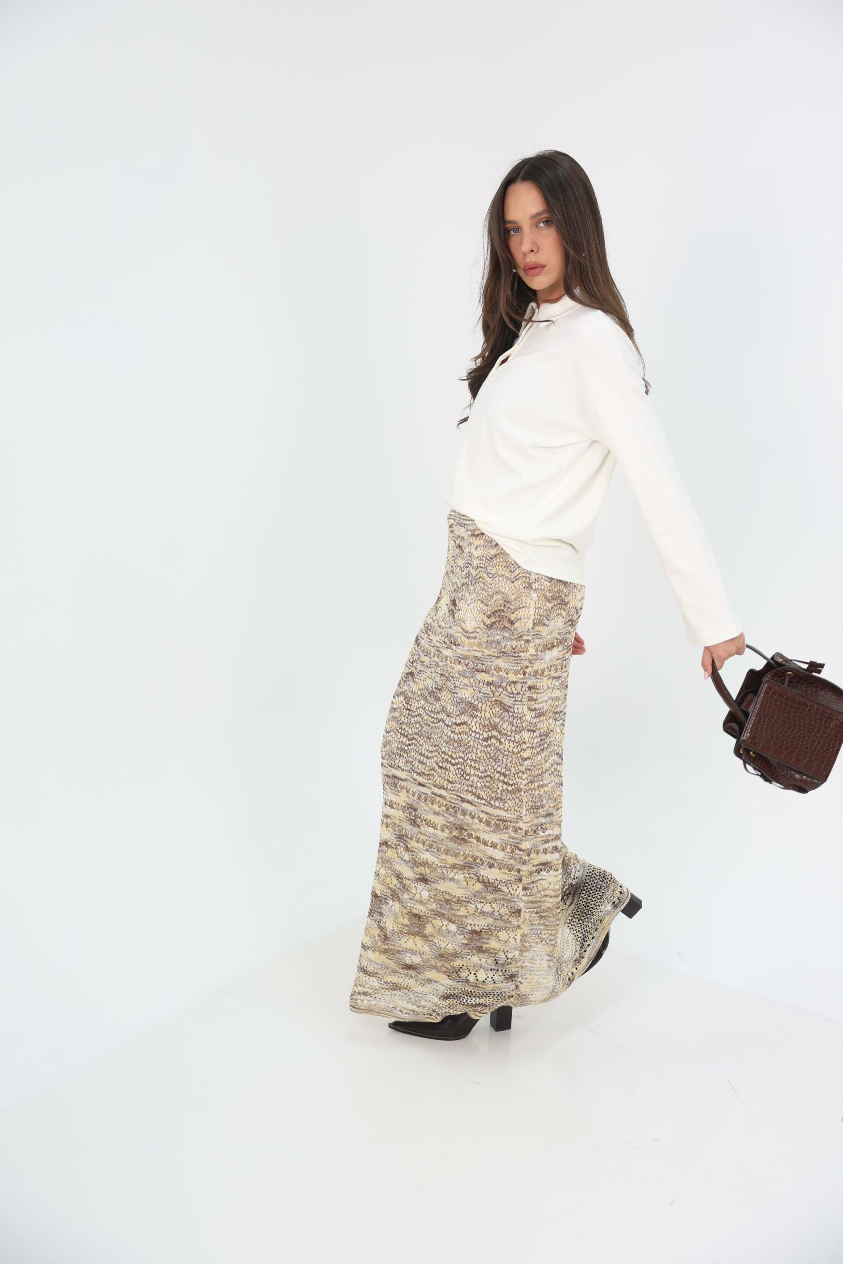 חצאית מקסי קרושה מנג'ט גומי נוח וגמיש.