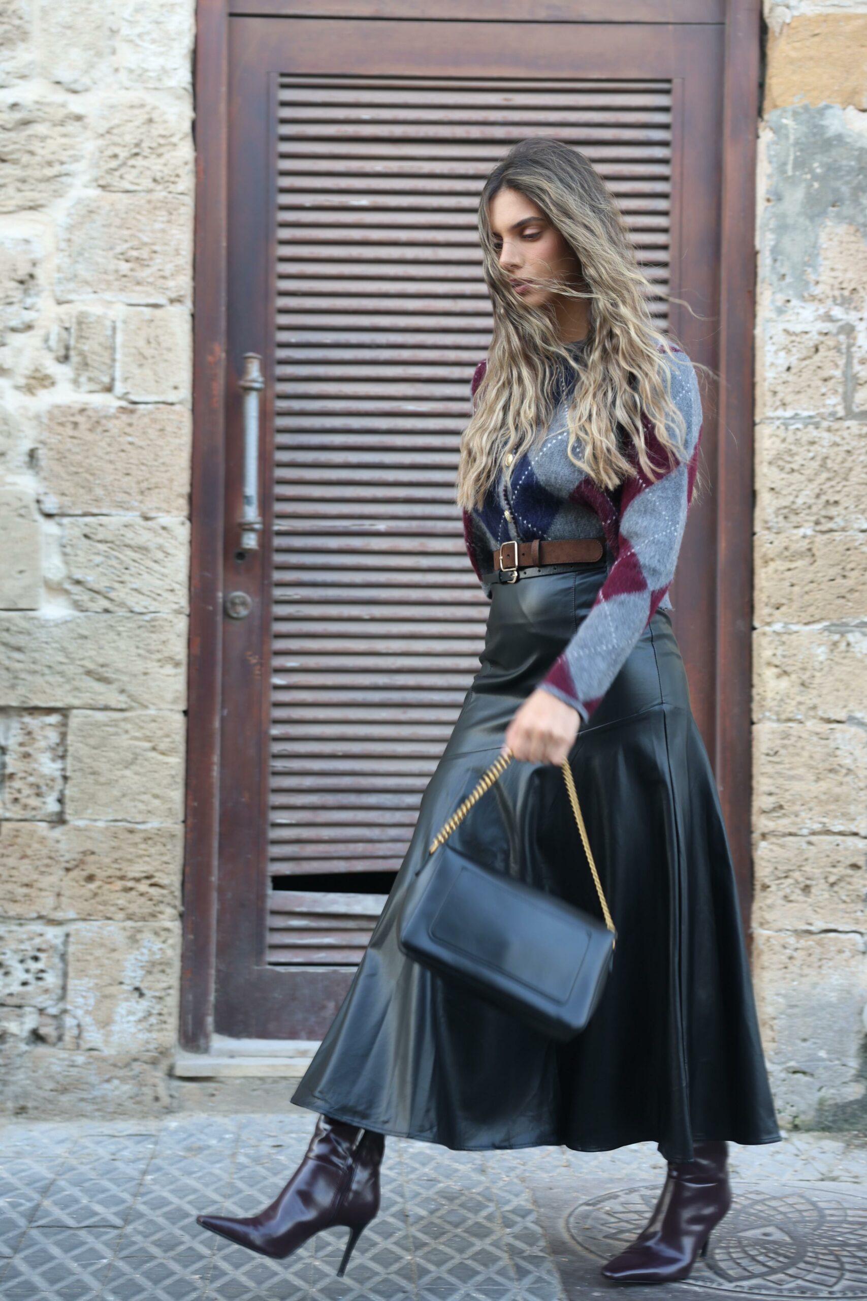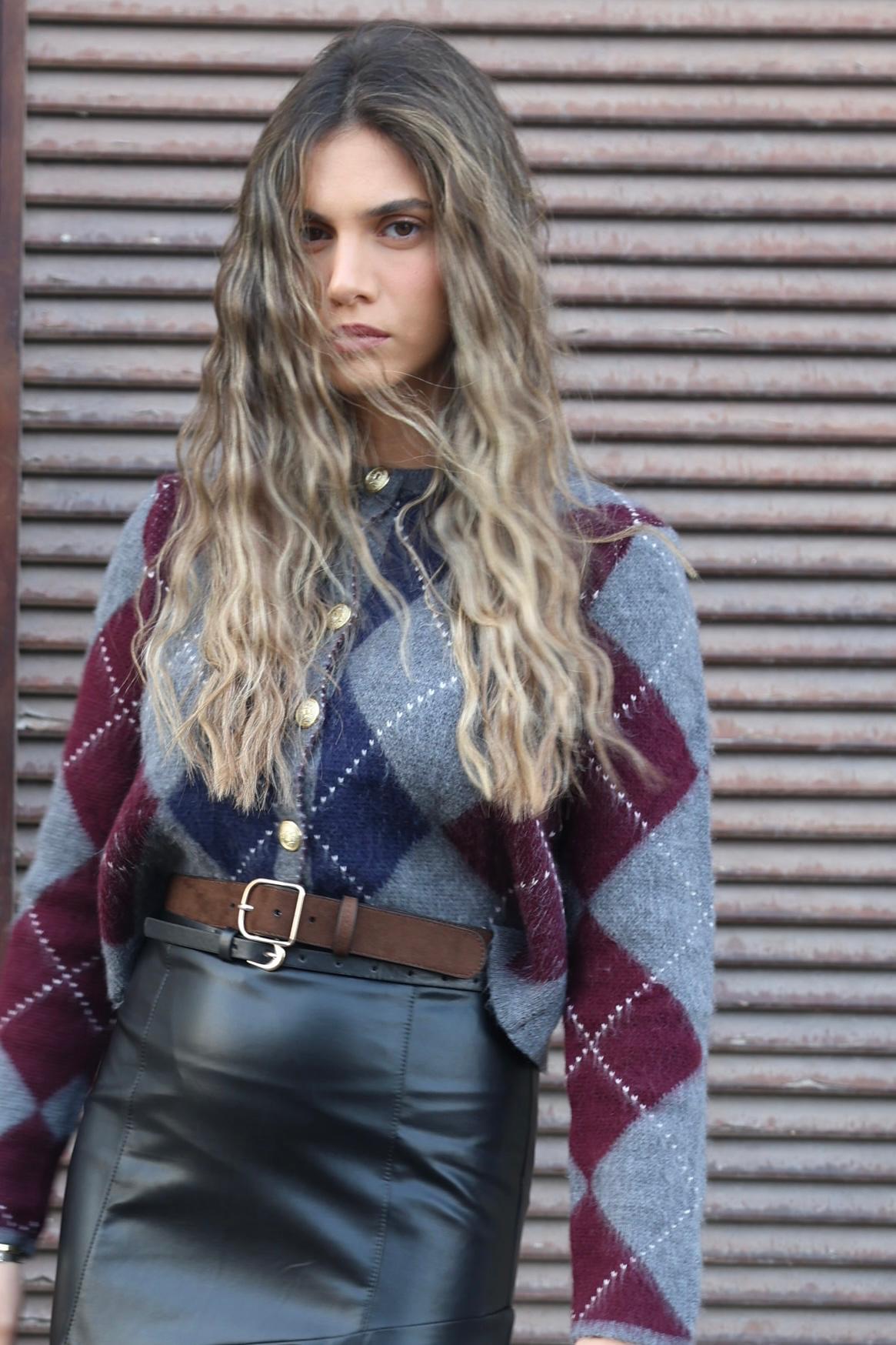 קרדיגן מעוינים כפתורי זהב צבע אחד בלבד בד נעים וכייפי.