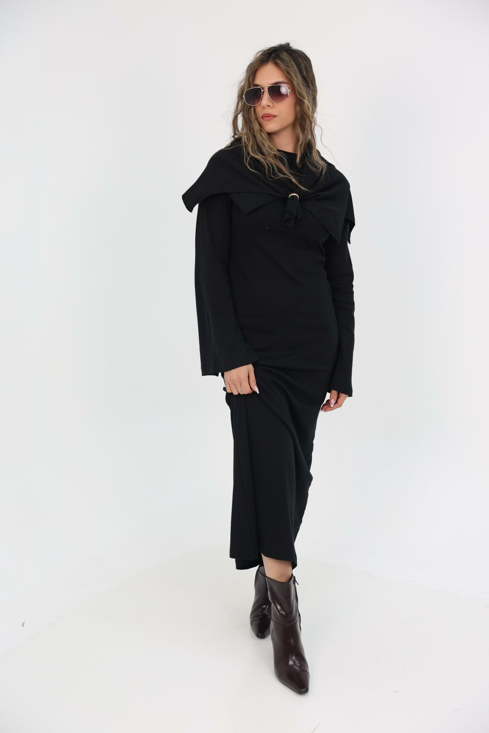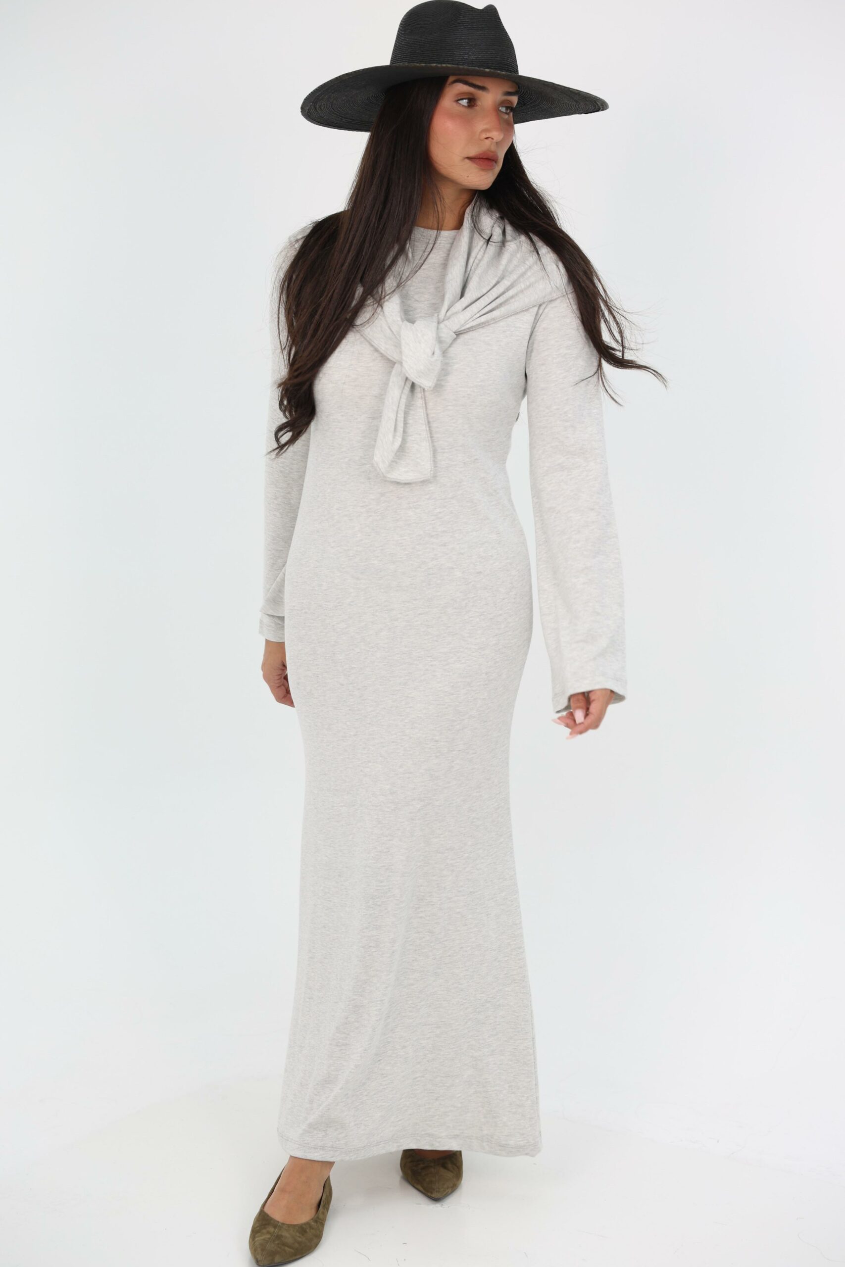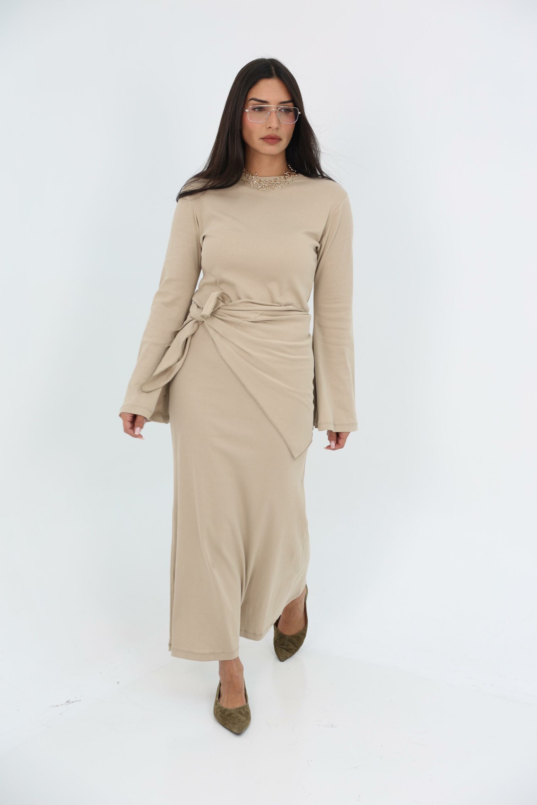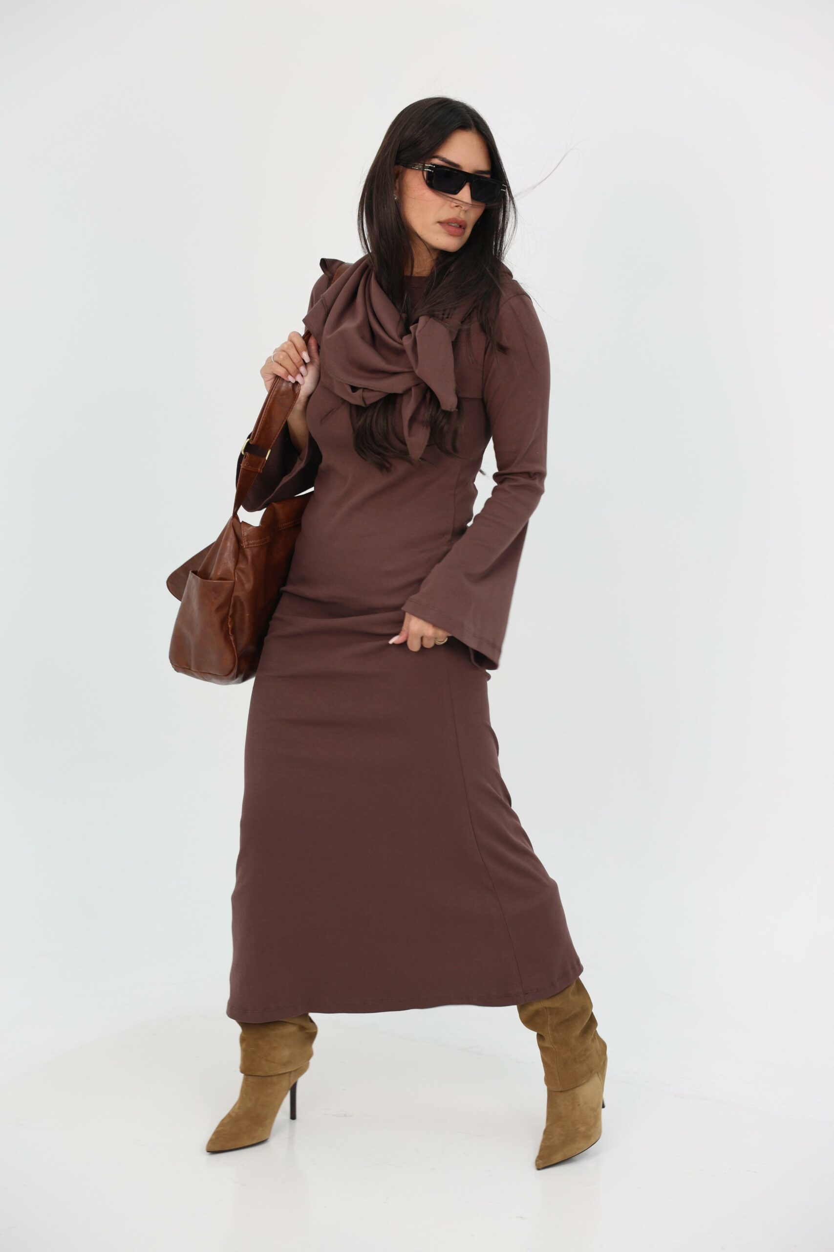 שמלת בייסיק גזרה נקייה ומחמיאה בעלת שרוולים פעמון
