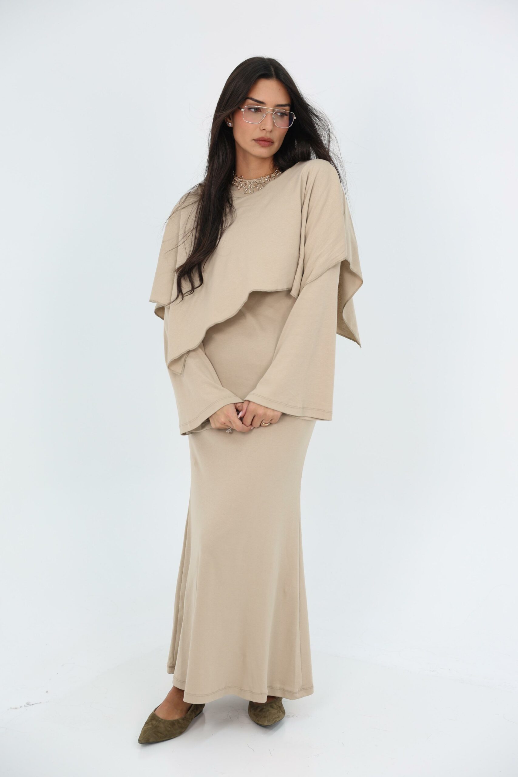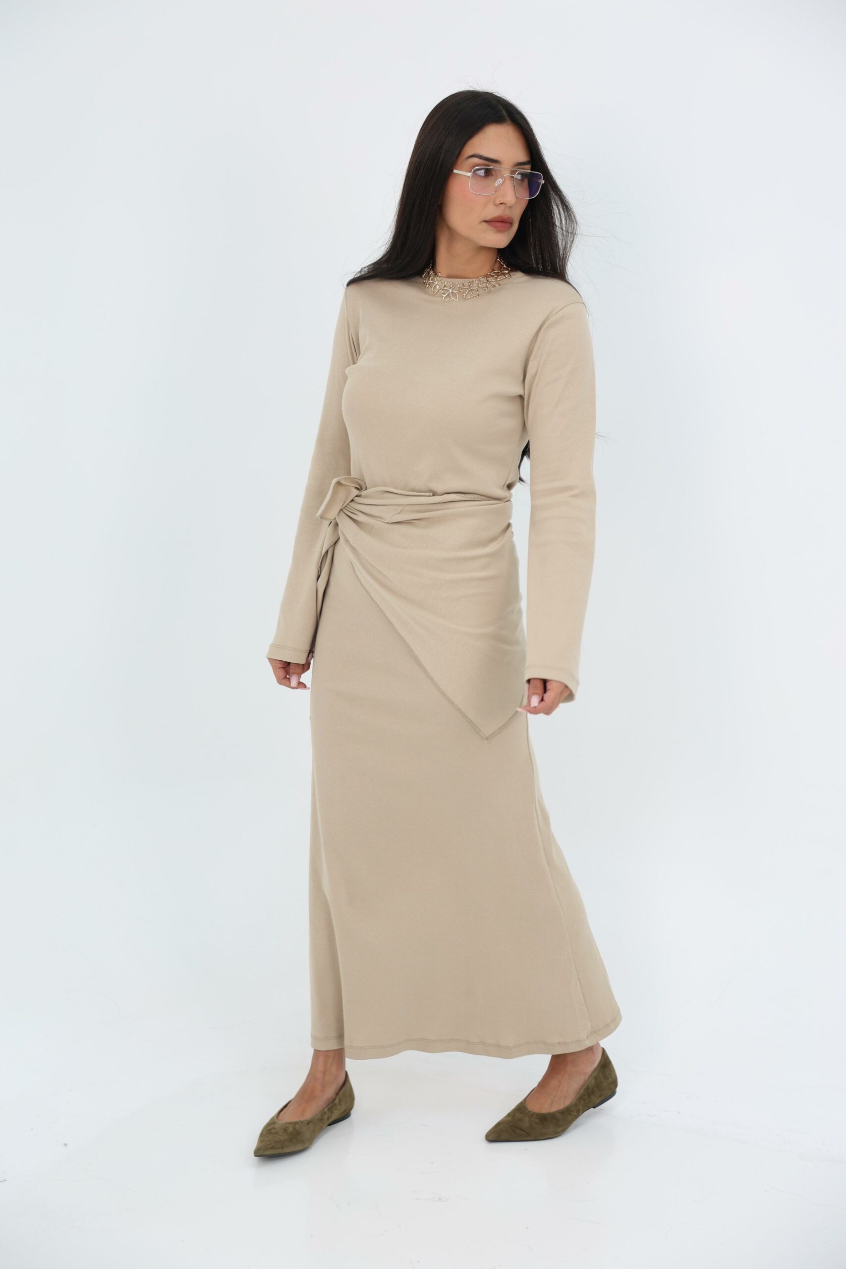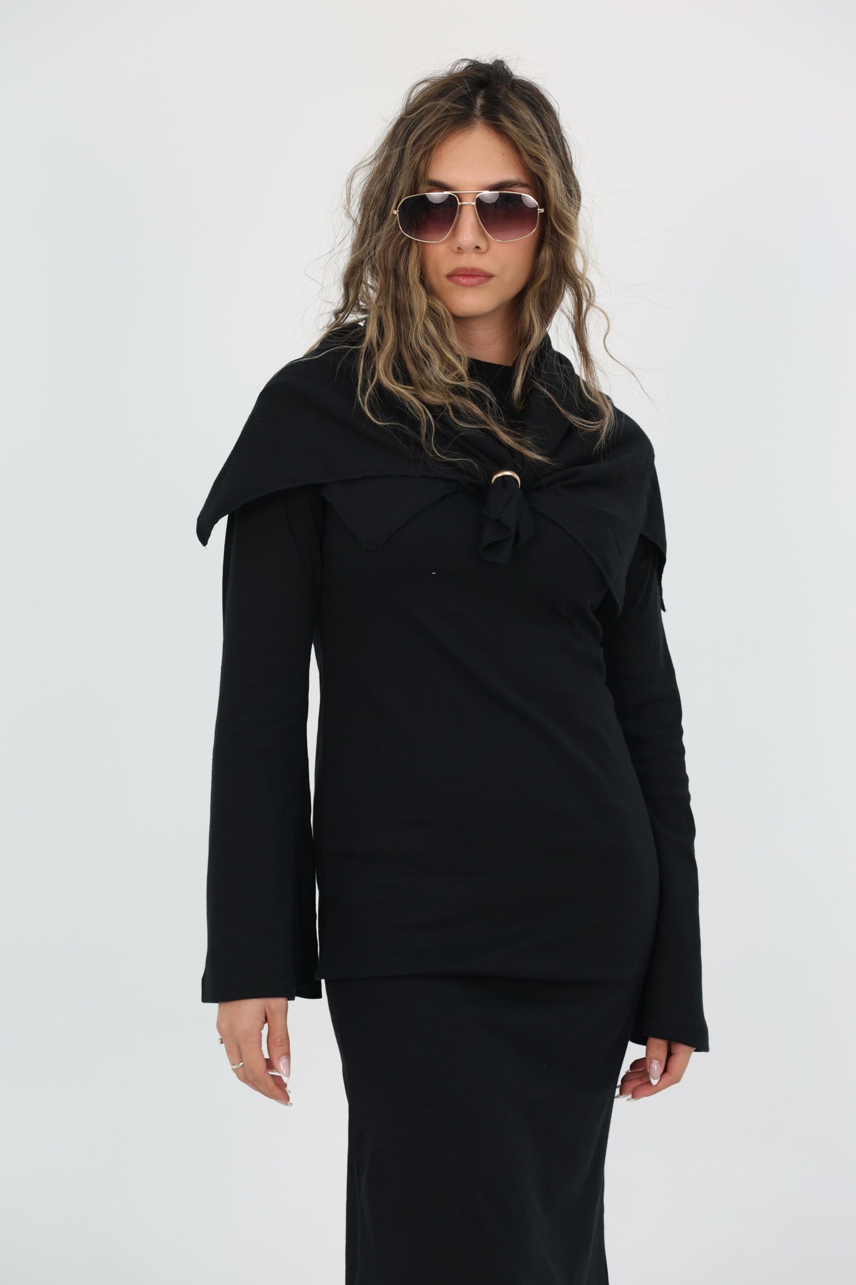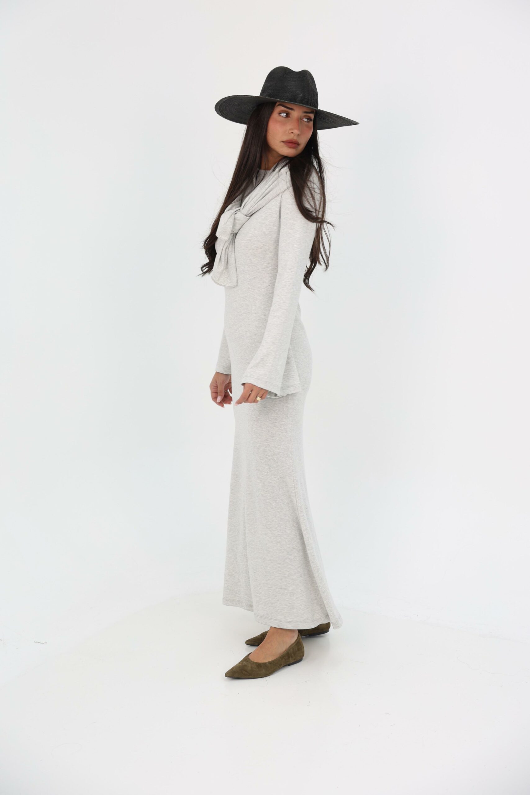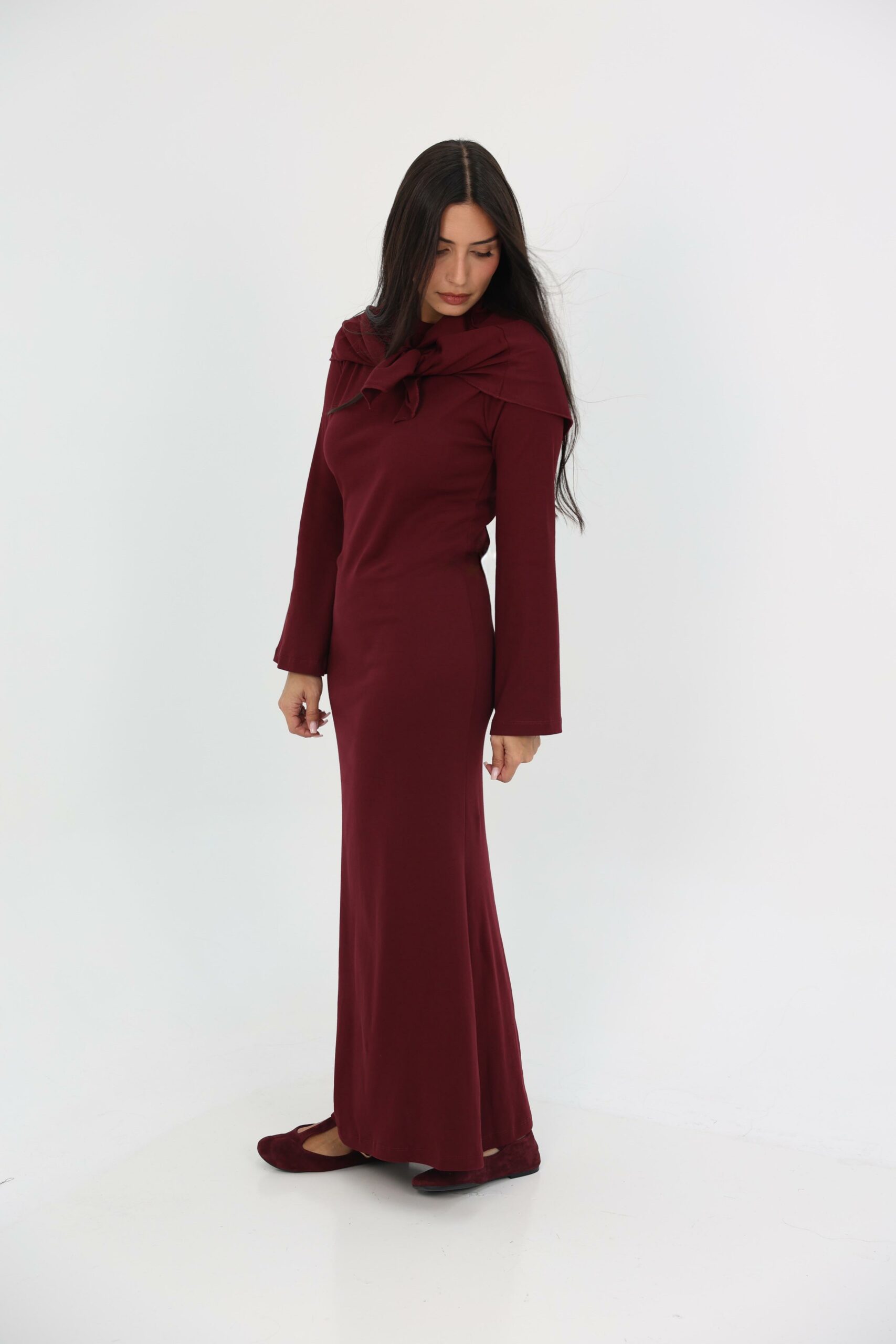 שמלת בייסיק גזרה נקייה ומחמיאה בעלת שרוולים פעמון
