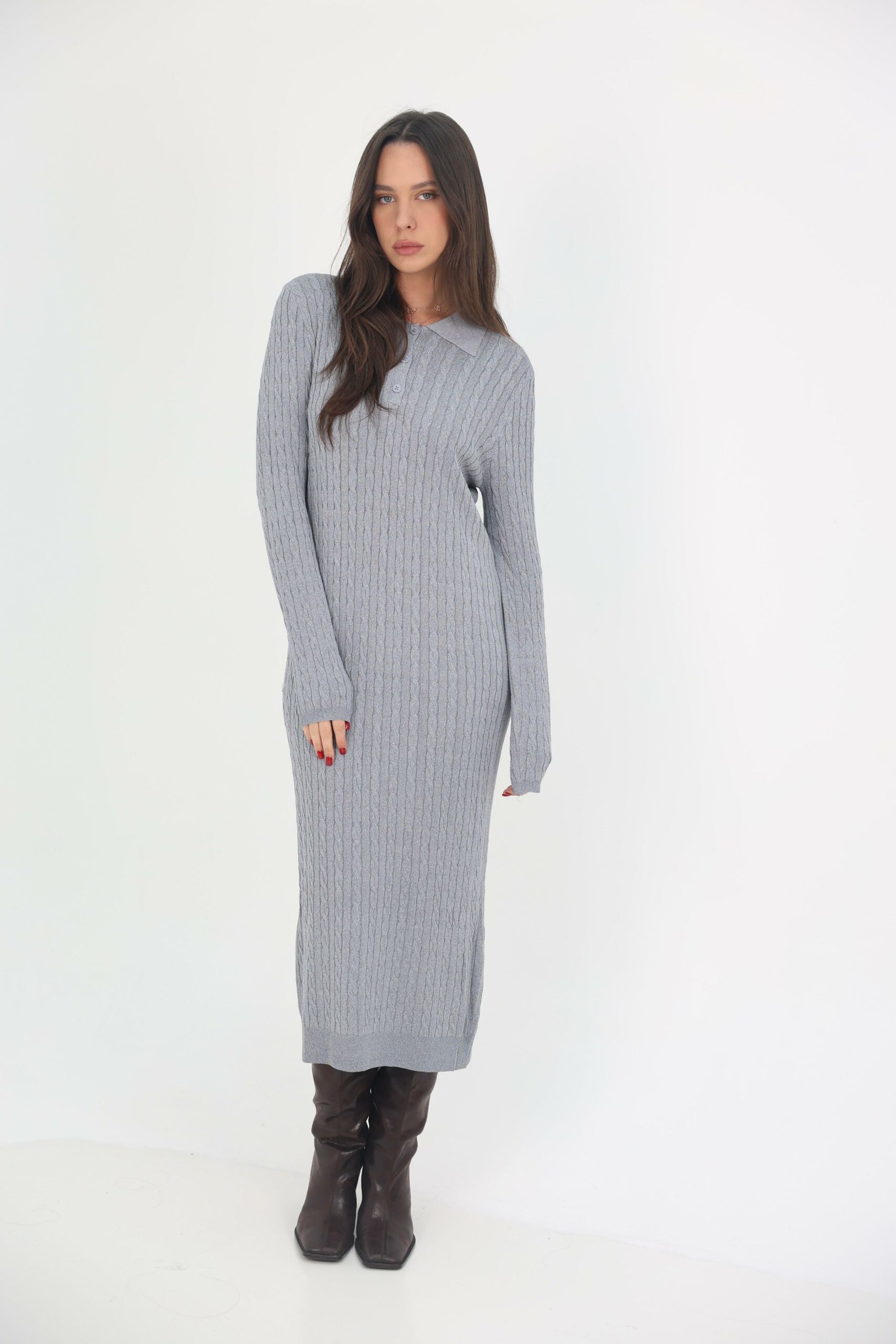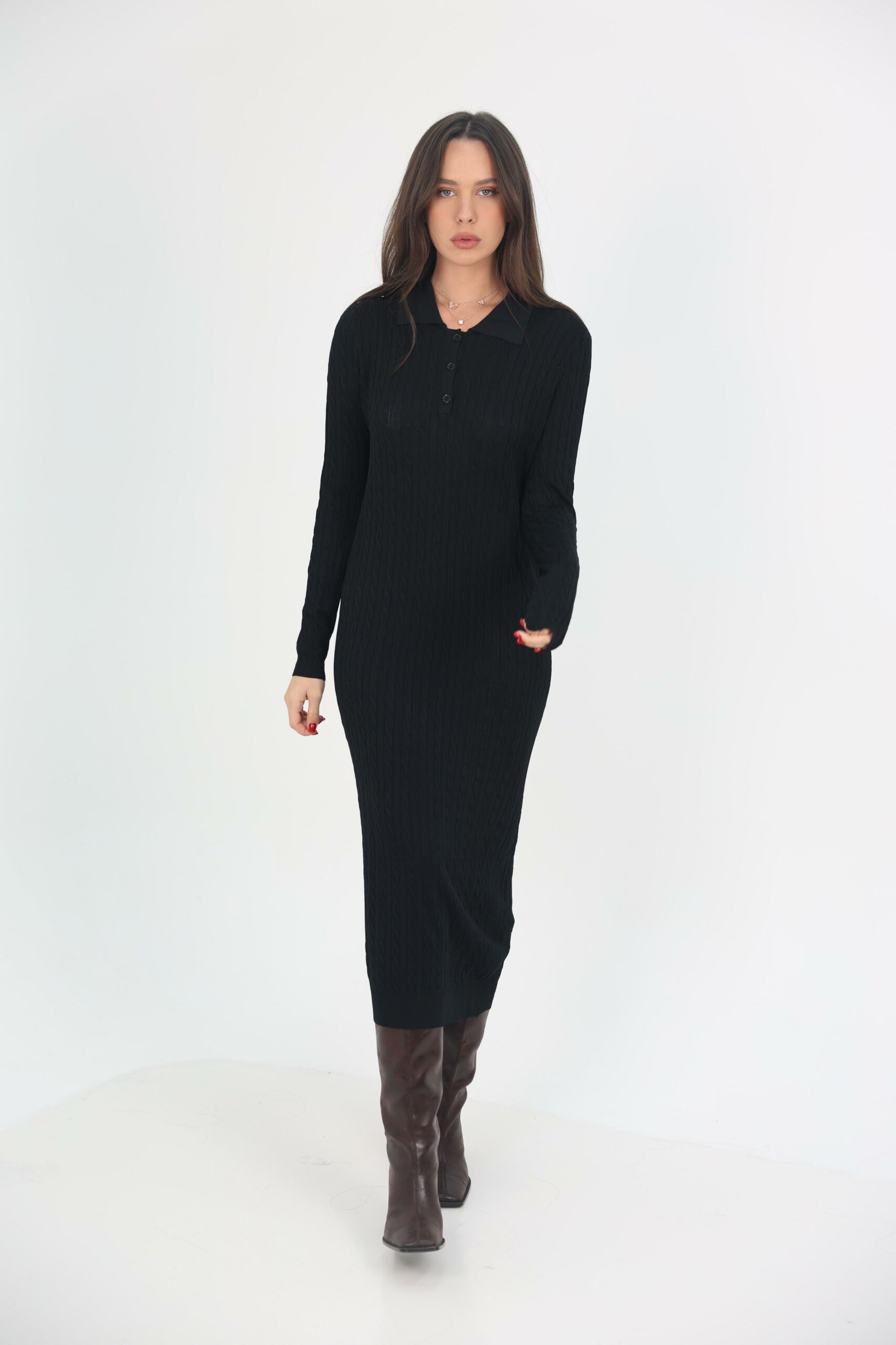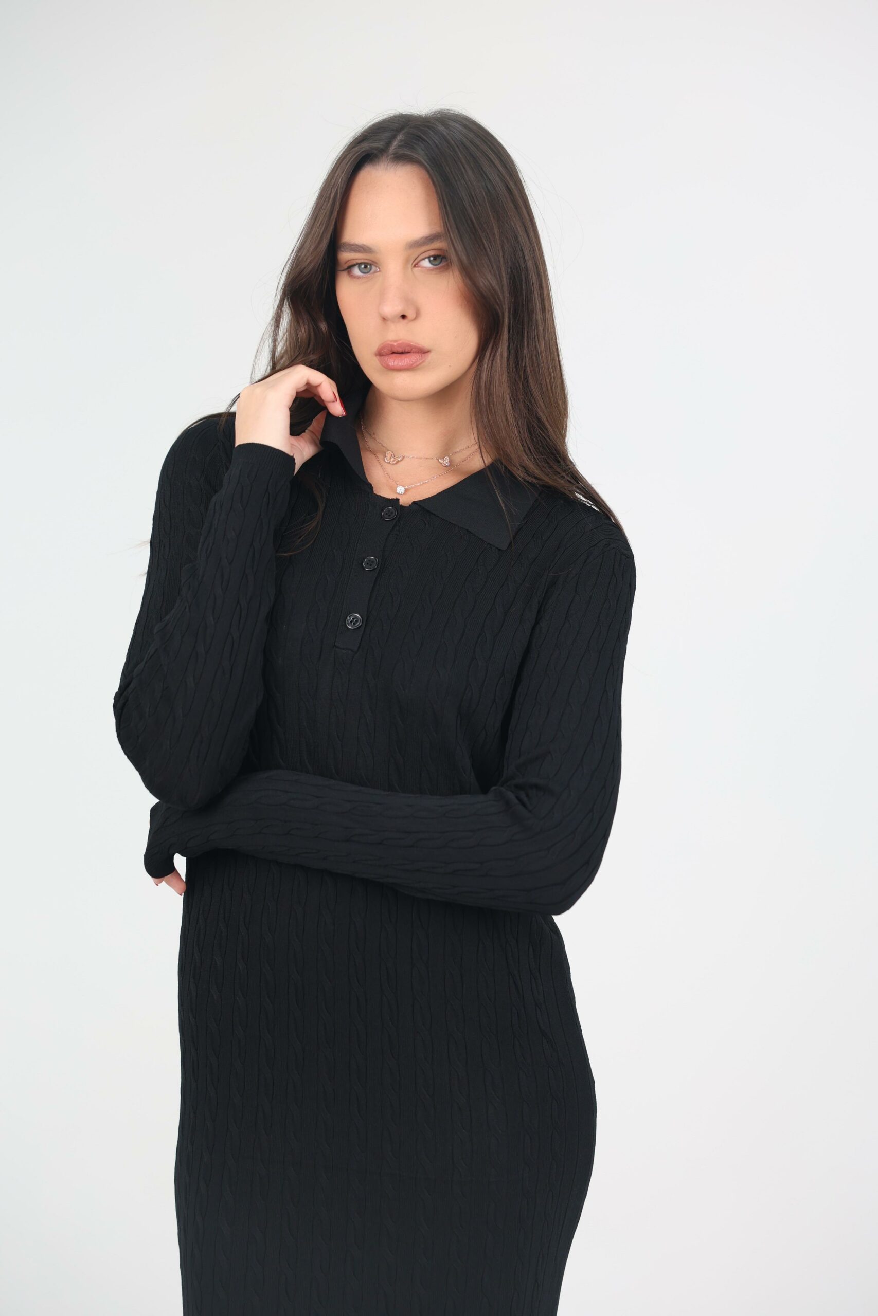 הדגם כולל צווארון פולו וכפתורים קדמיים עדינים, ושרוולים ארוכים לנוחות מקסימלית בחורף.
