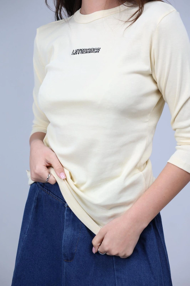 חולצת בייסיק בגזרה נקייה ומדויקת, עם טאץ’ אלגנטי ועדין.